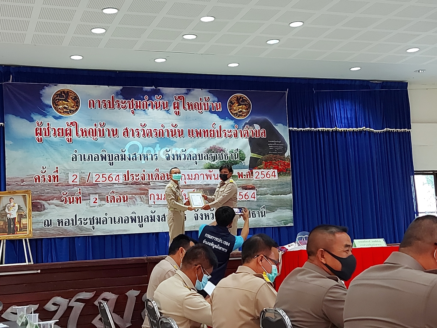 วันที่ 2 กุมภาพันธ์ 2564 นายบัญญัติ ไฝ่จิต ประมงอำเภอพิบูลมังสาหารร่วมประชุมประจำเดือนกำนันผู้ใหญ่บ้านและประชุมหัวหน้าส่วนราชการอำเภอพิบูลมังสาหาร ณ.หอประชุมอำเภอพิบูลมังสาหาร โดยมีนายฤทธิสรรค เทพภิทักษ์ นายอำเภอพิบูลมังสาหาร เป็นประธานที่ประชุม ประมงอำเภอได้ปรพชาสัมพันธ์ข่าวสารต่อที่ประชุม 1.แนวทางการปฎิบัติในช่วงฤดูน้ำแล้ง 2.ชี้แจง พระราชบัญญัติการประมง.3 การขึ้นทะเบียนผู้เพาะเลี้ยงสัตว์น้ำ