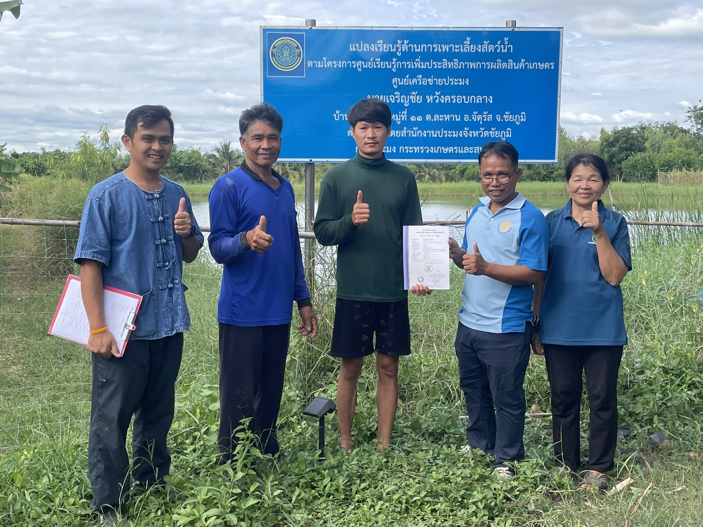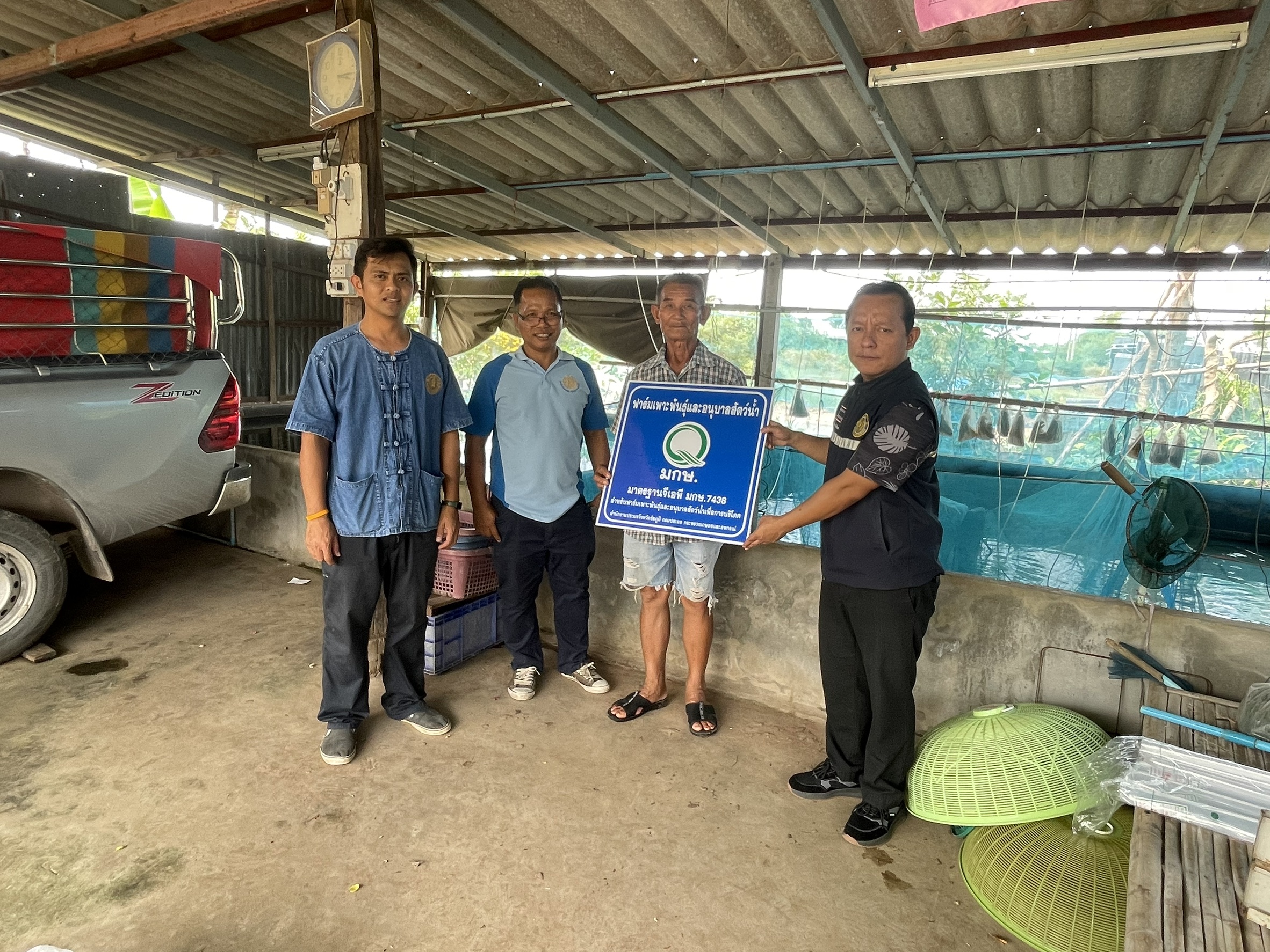 วันที่ 24 ตุลาคม 2568 กลุ่มพัฒนาและส่งเสริมอาชีพการประมง สำนักงานประมงจังหวัดชัยภูมิ และประมงอำเภอจัตุรัส ลงพื้นที่เตรียมความพร้อมเกษตรกรเพื่อเข้าร่วมโครงการยกระดับมาตรฐานคุณภาพมาตรฐานสินค้าเกษตร กิจกรรมพัฒนาคุณภาพสินค้าประมงสู่มาตรฐาน อำเภอจัตุรัส จังหวัดชัยภูมิ รายใหม่ และมอบป้าย Q มกษ. ฟาร์มเพาะพันธุ์และอนุบาลสัตว์น้ำ สำนักงานประมงจังหวัดชัยภูมิ ที่ผ่านการรับรอง มาตรฐาน มกษ.7438 กรมประมง จำนวน 2 ราย และมอบใบรับรองมาตรฐาน มกษ.7436 จำนวน 1 ราย พร้อมประชาสัมพันธ์ให้เกษตรกรรายอื่นๆที่สนใจให้เตรียมความพร้อมในการขอรับการรับรองมาตรฐานฯต่อไป