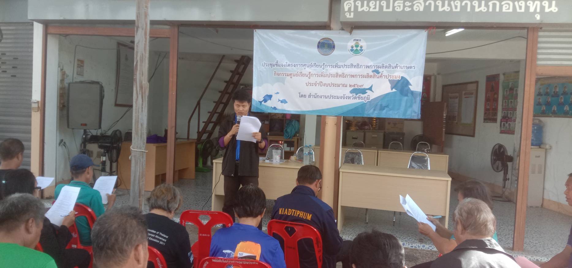 วันที่ 17 ธันวาคม 2568 นายวุฒิพนธ์ ศรีจินดา ประมงอำเภอคอนสวรรค์ จัดประชุมชี้แจง ถ่ายทอดความรู้ และทำแบบประเมิน ก่อน-หลังแก่กษตรกรผู้เข้าร่วมโครงการศูนย์เรียนรู้การเพิ่มประสิทธิภาพการผลิตสินค้าเกษตร กิจกรรมโครงการศูนย์เรียนรู้เพิ่มประสิทธิภาพการผลิตสินค้าประมง  ประจำปีงบประมาณ พ.ศ. 2569 ณ ศาลาบ้านโสก หมู่ที่ 1 ตำบลบ้านโสก อำเภอคอนสวรรค์ จังหวัดชัยภูมิ โดยมีเกษตรกรเข้าร่วมโครงการจำนวน 25 ราย