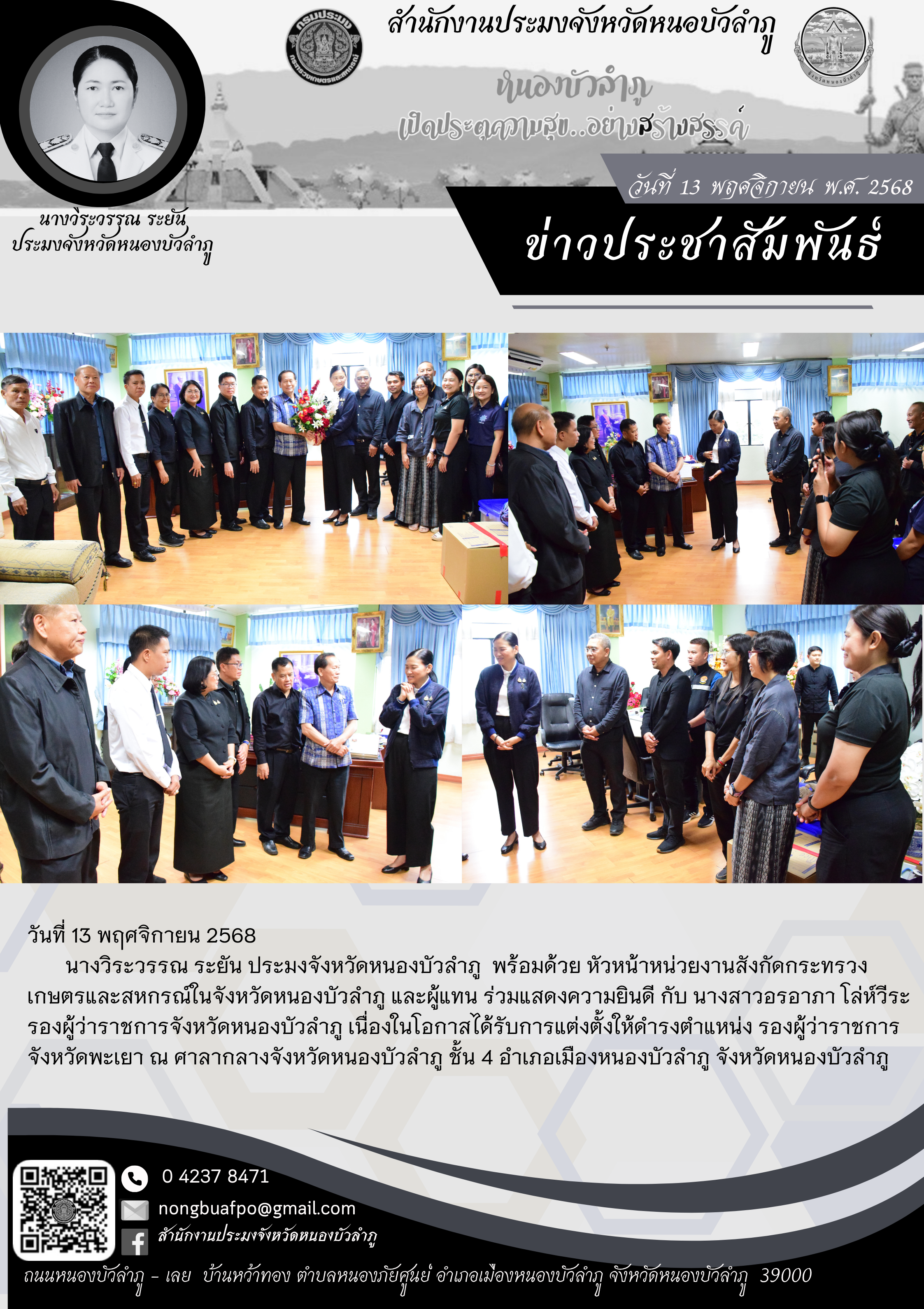 ร่วมแสดงความยินดี กับ นางสาวอรอาภา โล่ห์วีระ รองผู้ว่าราชการจังหวัดหนองบัวลำภู เนื่องในโอกาสได้รับการแต่งตั้งให้ดำรงตำแหน่ง รองผู้ว่าราชการจังหวัดพะเยา