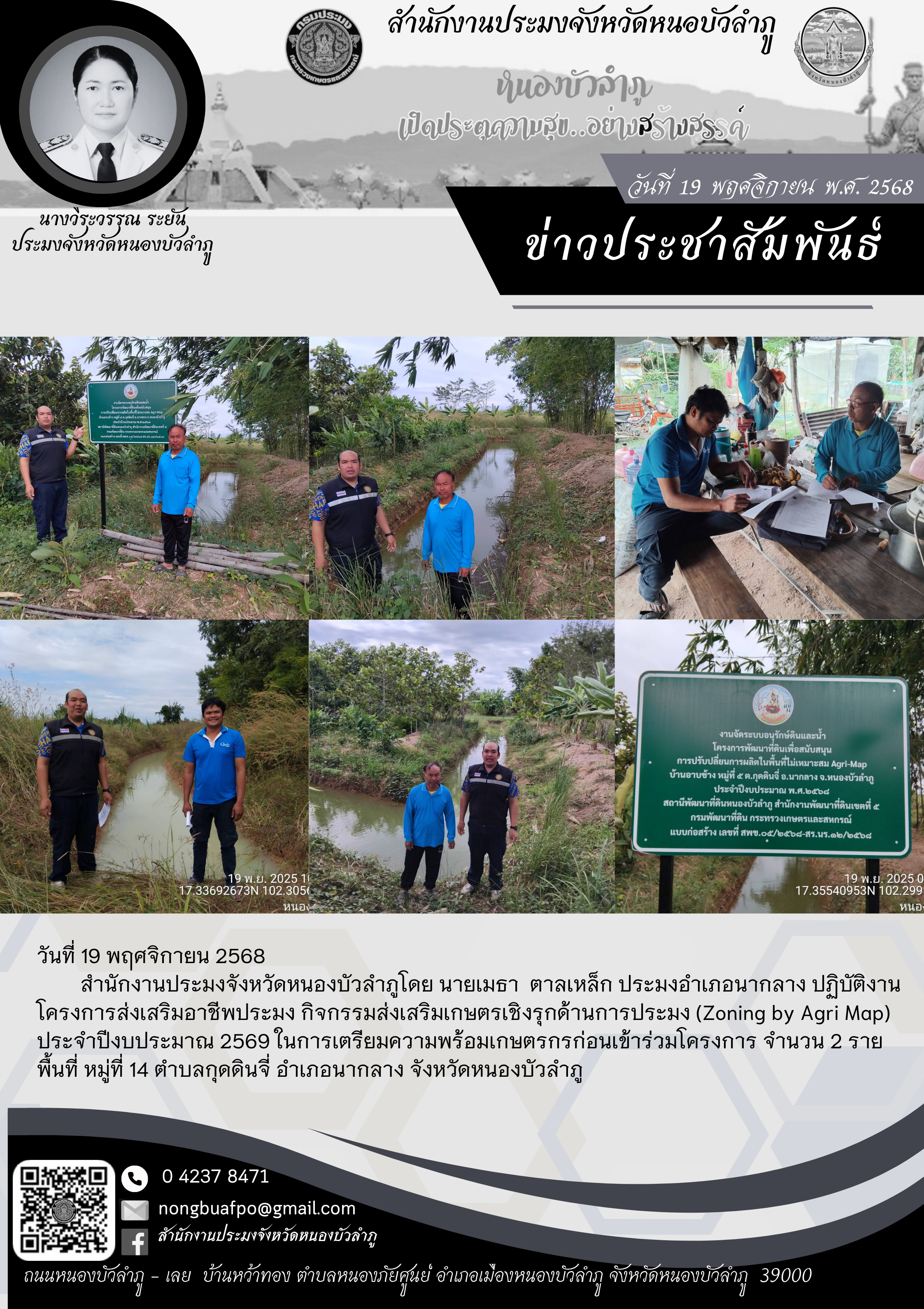 สำนักงานประมงจังหวัดหนองบัวลำภูโดย นายเมธา ตาลเหล็ก ประมงอำเภอนากลาง ปฏิบัติงานโครงการส่งเสริมอาชีพประมง กิจกรรมส่งเสริมเกษตรเชิงรุกด้านการประมง (Zoning by Agri Map) ประจำปีงบประมาณ 2569 ในการเตรียมความพร้อมเกษตรกรก่อนเข้าร่วมโครงการ จำนวน 2 รายพื้นที่ หมู่ที่ 14 ตำบลกุดดินจี่ อำเภอนากลาง จังหวัดหนองบัวลำภู