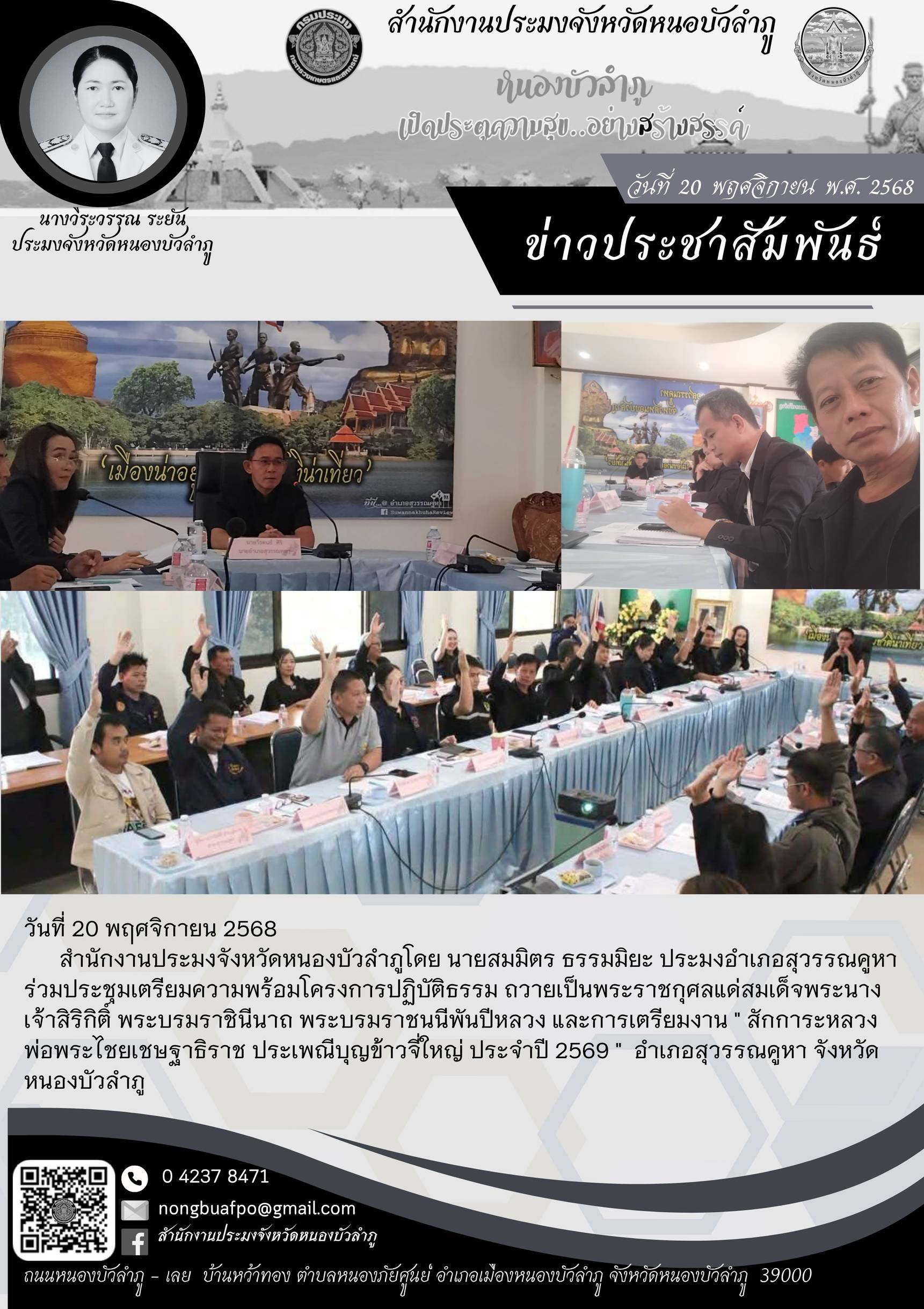 ร่วมประชุมเตรียมความพร้อมโครงการปฏิบัติธรรม ถวายเป็นพระราชกุศลแด่สมเด็จพระนางเจ้าสิริกิติ์ พระบรมราชินีนาถ พระบรมราชนนีพันปีหลวง และการเตรียมงาน " สักการะหลวงพ่อพระไชยเชษฐาธิราช ประเพณีบุญข้าวจี่ใหญ่ ประจำปี 2569 "