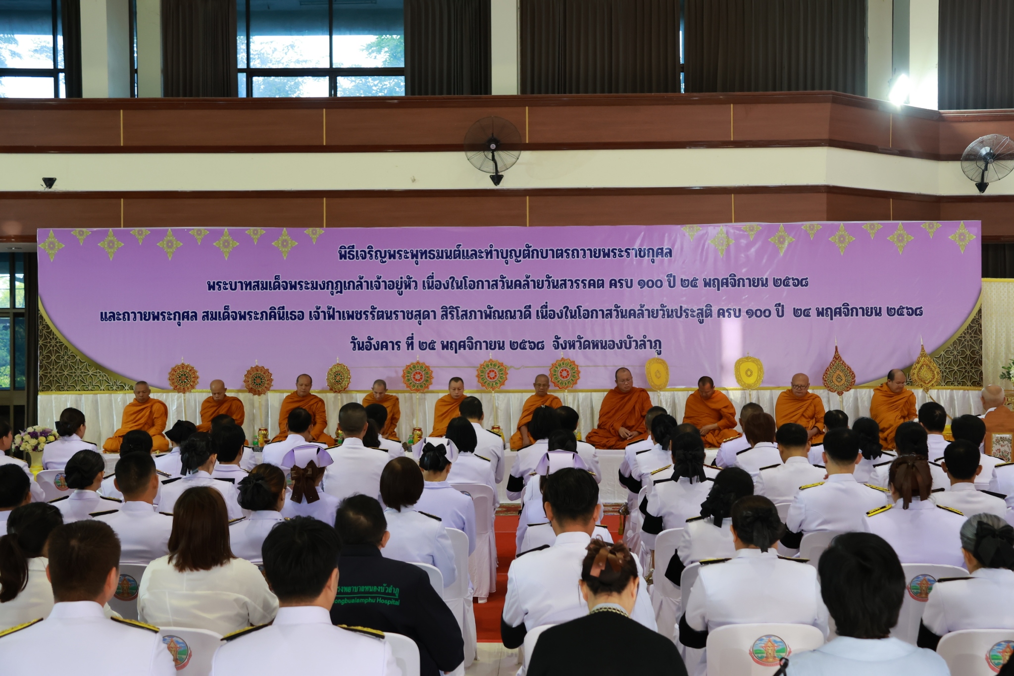 ร่วมพิธีเจริญพระพุทธมนต์ และทำบุญตักบาตรถวายพระราชกุศลแด่พระบาทสมเด็จพระมงกุฎเกล้าเจ้าอยู่หัว เนื่องในโอกาสวันคล้ายวันสวรรคต 100 ปี 25 พฤศจิกายน 2568 และเฉลิมพระเกียรติสมเด็จพระเจ้าภคินีเธอเจ้าฟ้าเพชรรัตน์ราชสุดา สิริโสภาพัณณวดี เนื่องในโอกาสวันคล้ายวันประสูติครบ 100 ปี 24 พฤศจิกายน 2568
