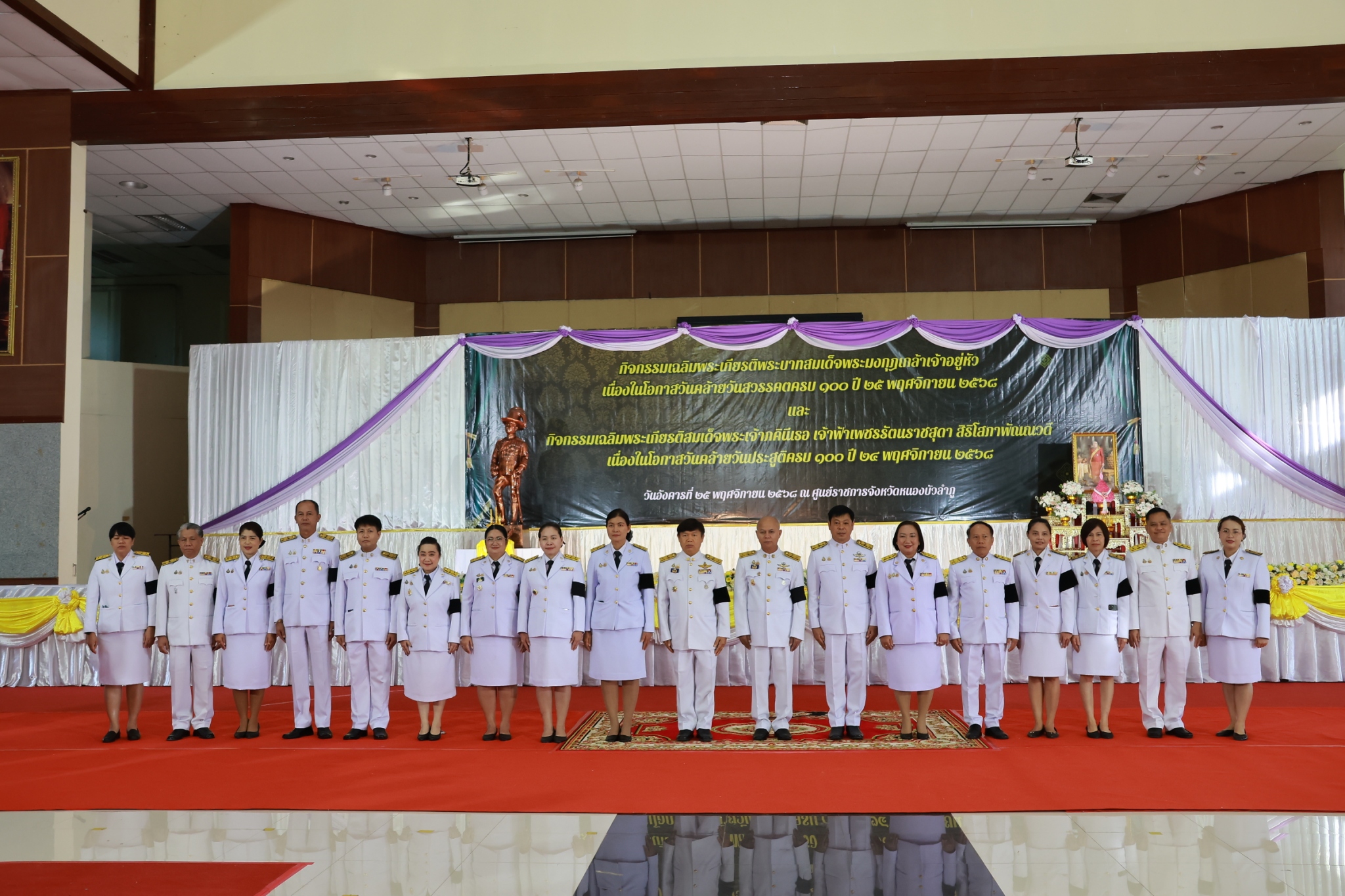 นางวิระวรรณ ระยัน ประมงจังหวัดหนองบัวลำภู พร้อมด้วยนายสมภาร วังคีรี หัวหน้ากลุ่มบริหารจัดการด้านการประมง และนายไพศาล ศรีคูณ นักวิชาการประมง ร่วมพิธีเจริญพระพุทธมนต์ และทำบุญตักบาตรถวายพระราชกุศลแด่พระบาทสมเด็จพระมงกุฎเกล้าเจ้าอยู่หัว เนื่องในโอกาสวันคล้ายวันสวรรคต 100 ปี 25 พฤศจิกายน 2568 และเฉลิมพระเกียรติสมเด็จพระเจ้าภคินีเธอเจ้าฟ้าเพชรรัตน์ราชสุดา สิริโสภาพัณณวดี เนื่องในโอกาสวันคล้ายวันประสูติครบ 100 ปี 24 พฤศจิกายน 2568 โดยมีนายสุรศักดิ์ อักษรกุล ผู้ว่าราชการจังหวัดหนองบัวลำภู เป็นประธานในพิธีฯ ณ หอประชุมอนาลโย ศูนย์ราชการจังหวัดหนองบัวลำภู อำเภอเมืองหนองบัวลำภู จังหวัดหนองบัวลำภู