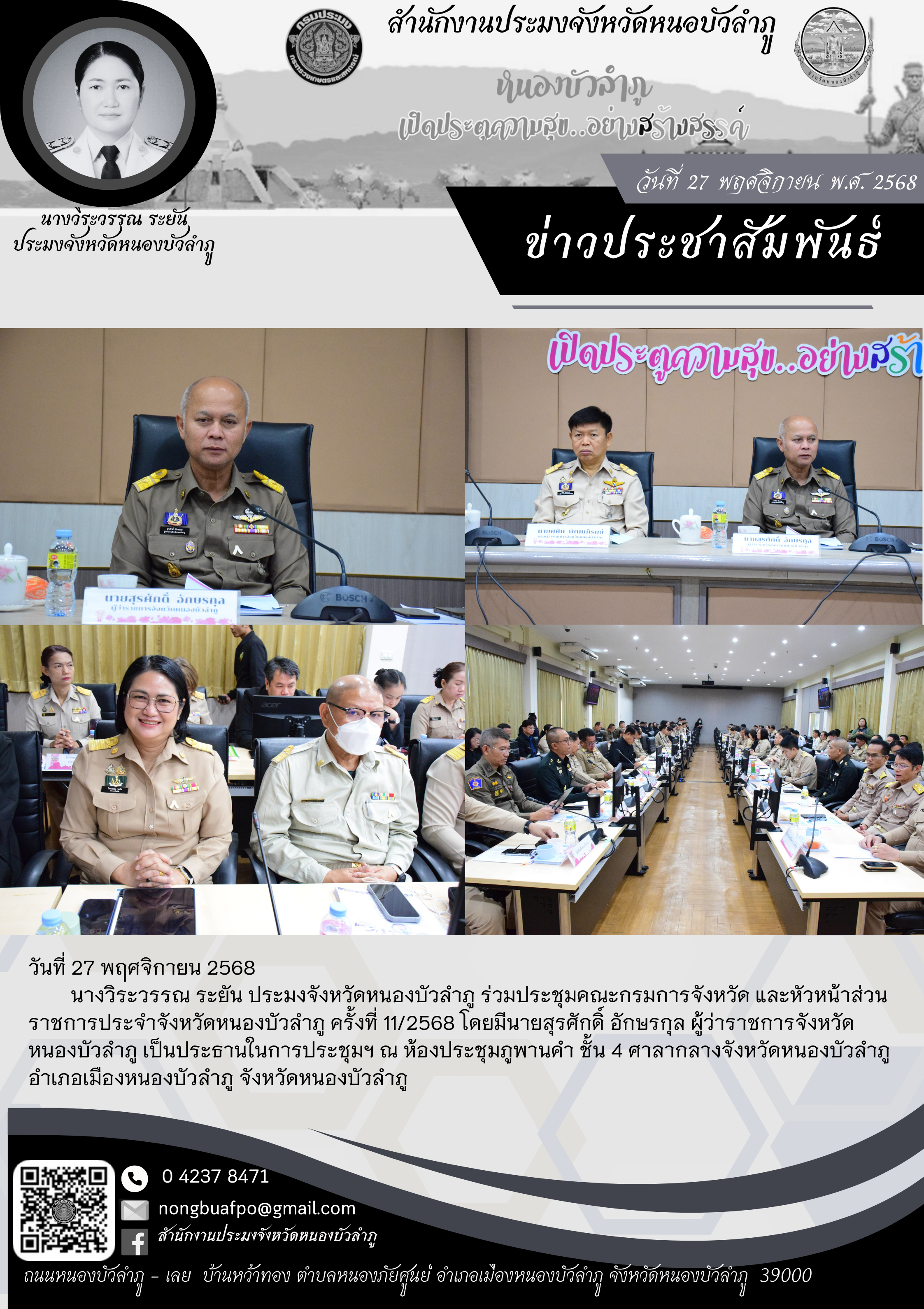 ร่วมประชุมคณะกรมการจังหวัด และหัวหน้าส่วนราชการประจำจังหวัดหนองบัวลำภู ครั้งที่ 11/2568