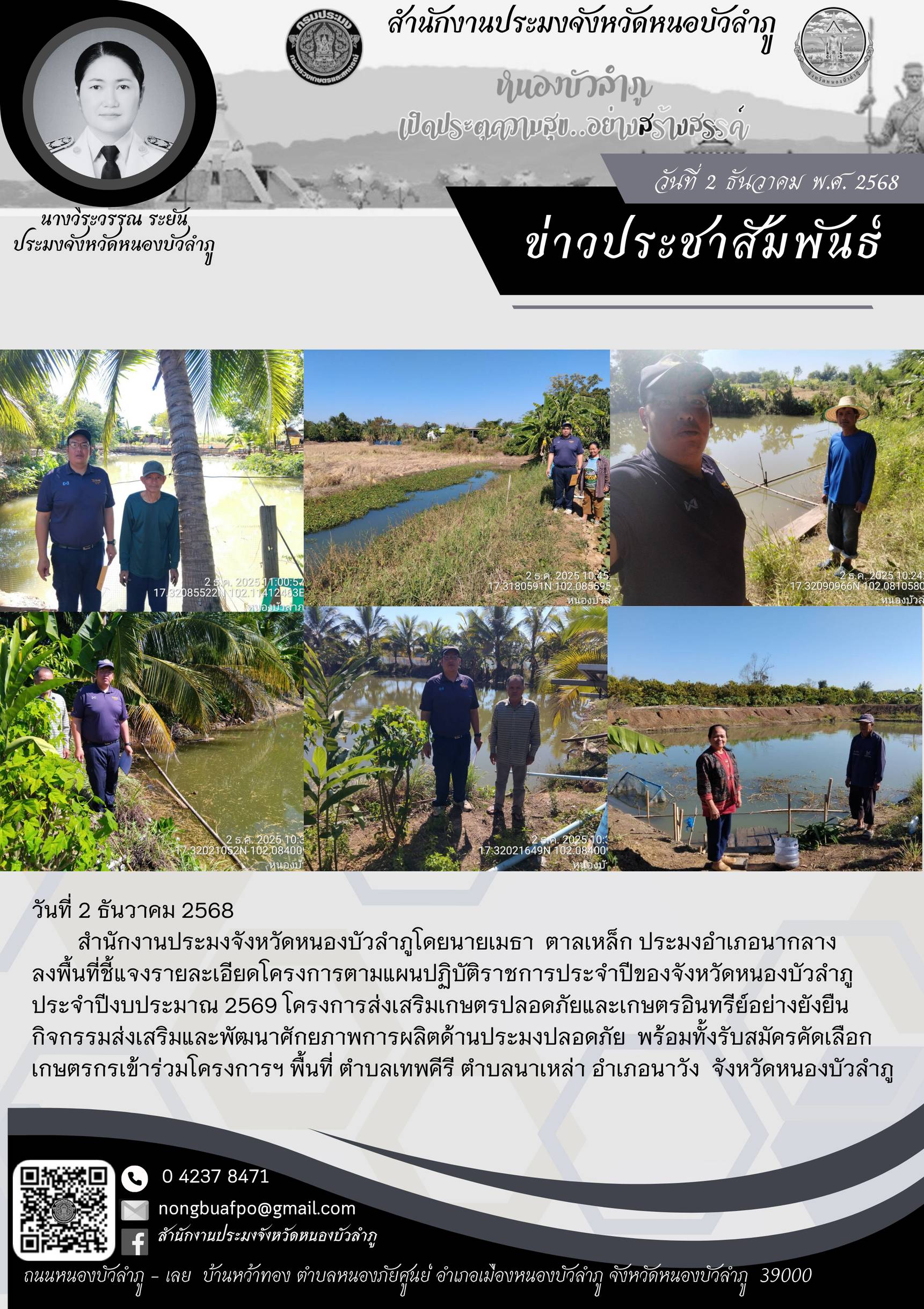 ลงพื้นที่ชี้แจงรายละเอียดโครงการตามแผนปฏิบัติราชการประจำปีของจังหวัดหนองบัวลำภู ประจำปีงบประมาณ 2569