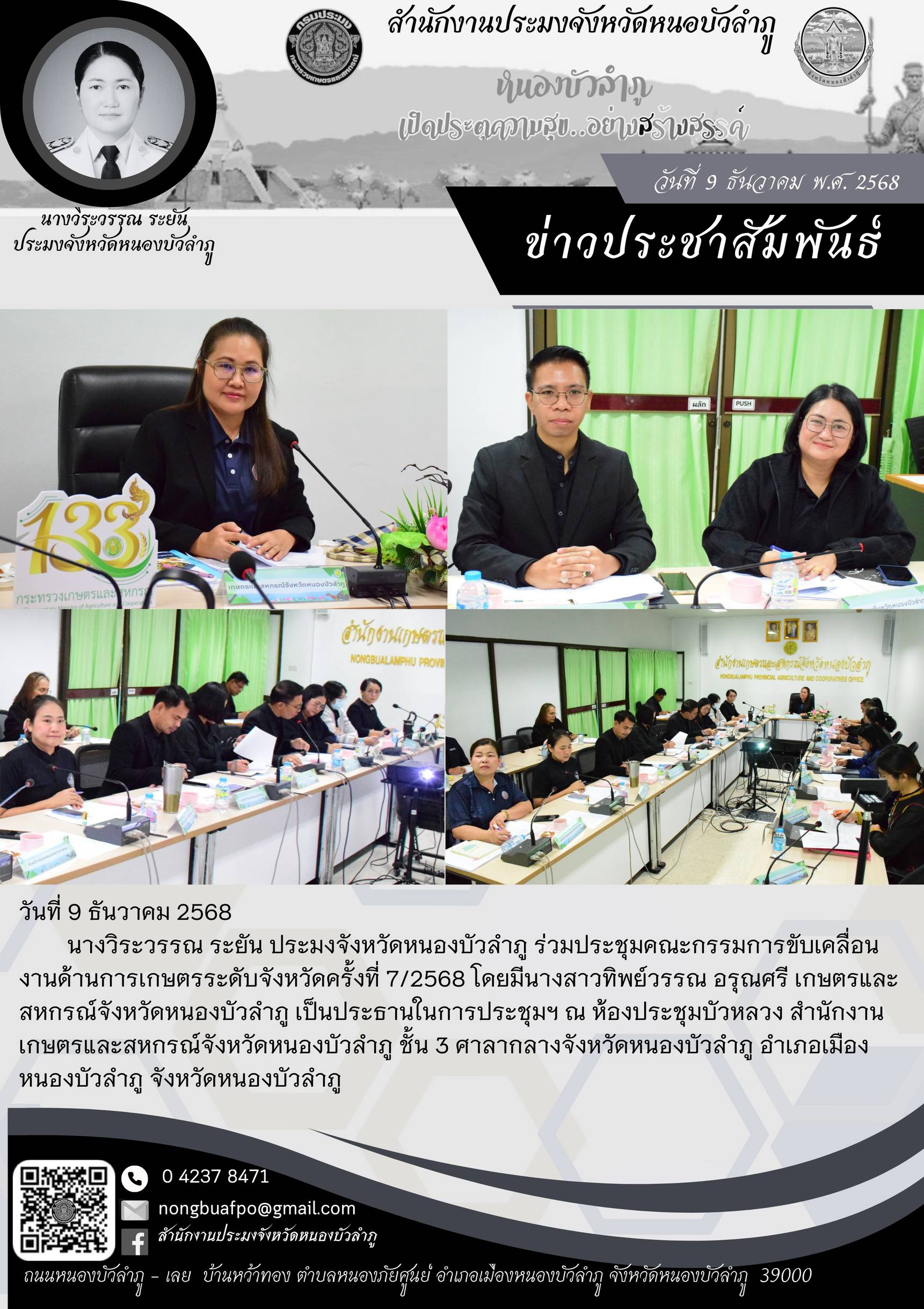 ร่วมประชุมคณะกรรมการขับเคลื่อนงานด้านการเกษตรระดับจังหวัดครั้งที่ 7/2568
