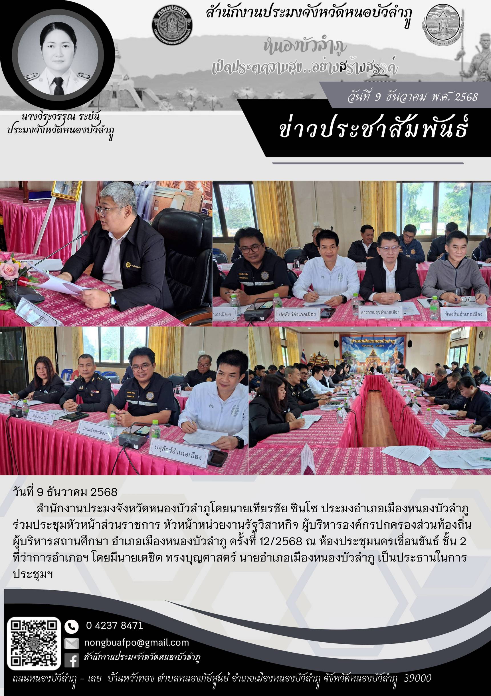 ร่วมประชุมหัวหน้าส่วนราชการ หัวหน้าหน่วยงานรัฐวิสาหกิจ ผู้บริหารองค์กรปกครองส่วนท้องถิ่น ผู้บริหารสถานศึกษา อำเภอเมืองหนองบัวลำภู ครั้งที่ 12/2568