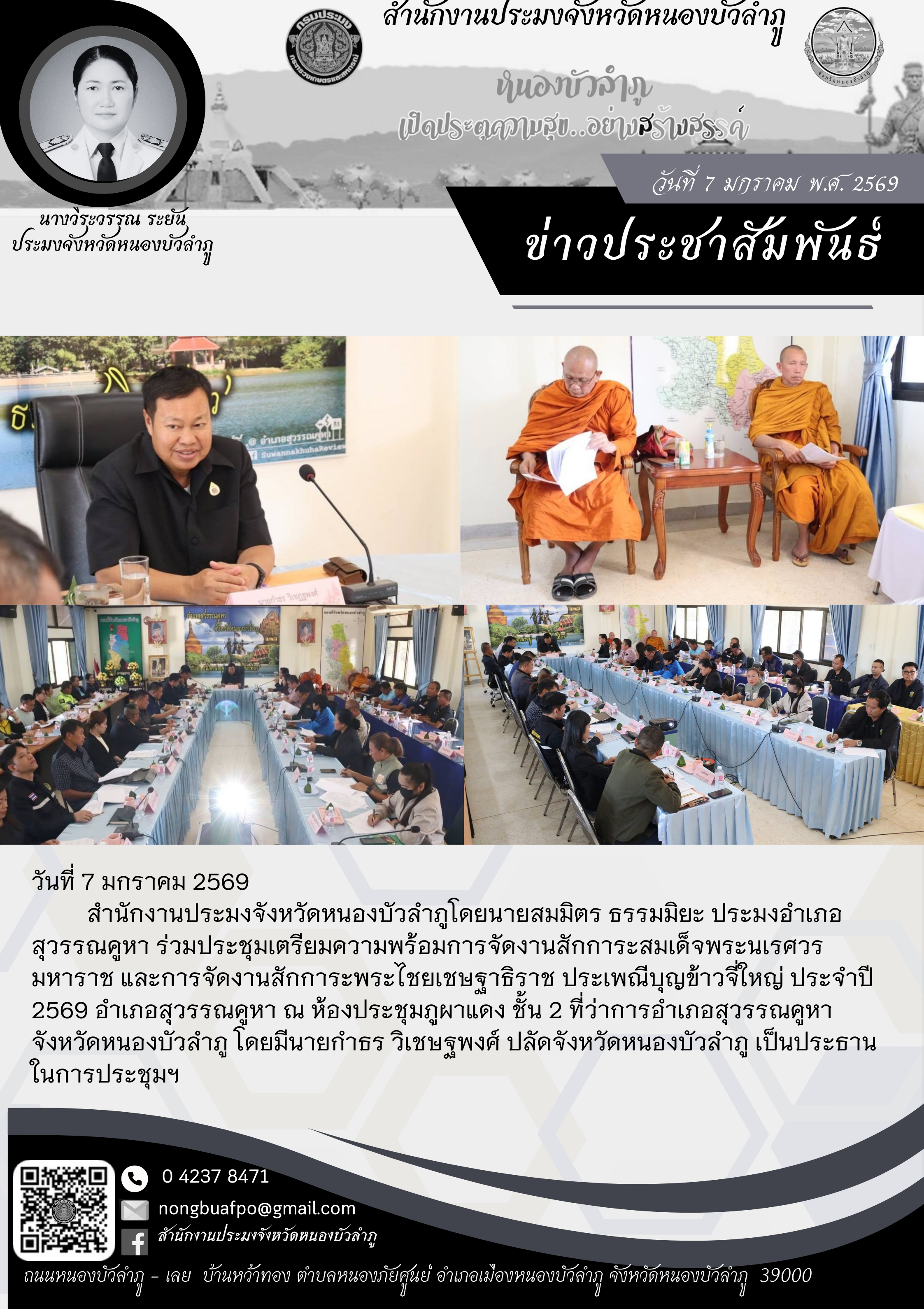 ร่วมพิธีเจริญพระพุทธมนต์และพิธีทำบุญตักบาตรถวายพระราชกุศล เนื่องในโอกาสวันคล้ายวันประสูติ สมเด็จพระเจ้าลูกเธอ เจ้าฟ้าสิริณณวรี นารีรัตนราชกัญญา 8 มกราคม 2569 จังหวัดหนองบัวลำภู