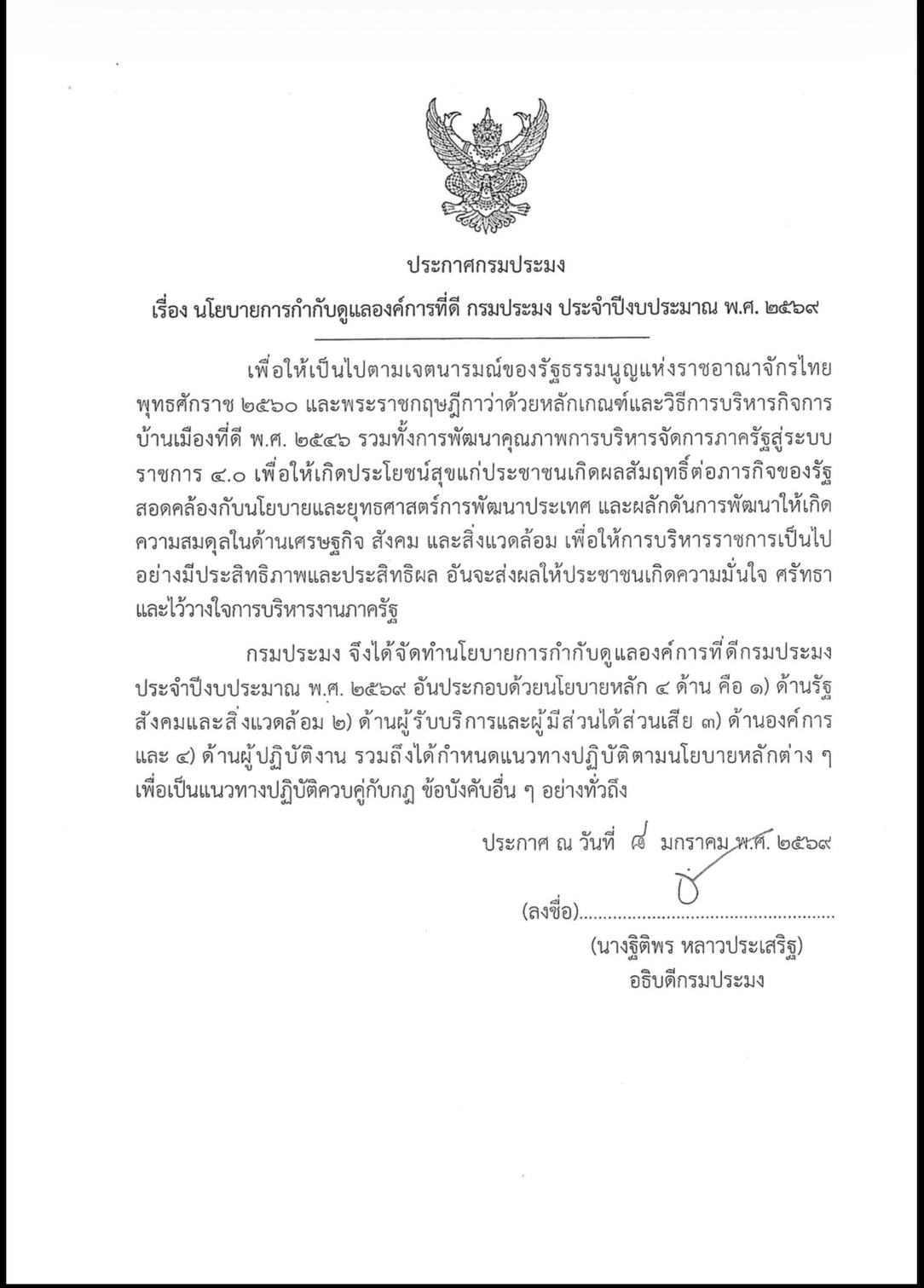 ประกาศกรมประมง เรื่อง นโยบายการกำกับดูแลองค์การที่ดี กรมประมง ประจำปีงบประมาณ พ.ศ. 2569