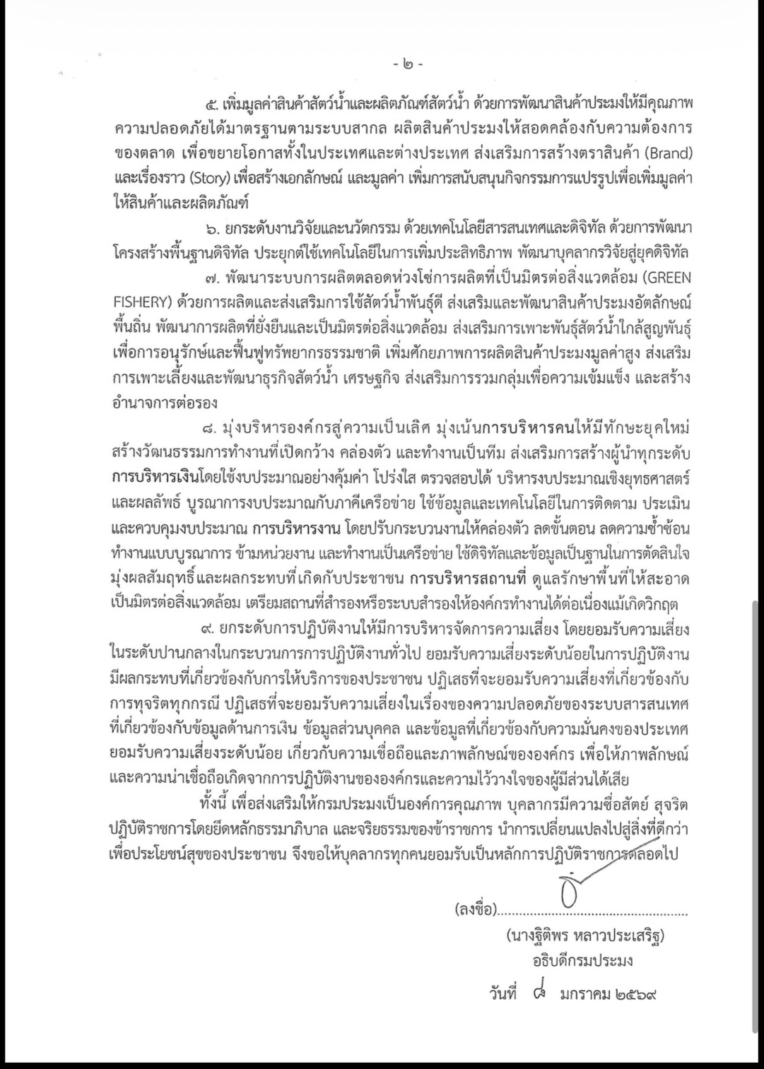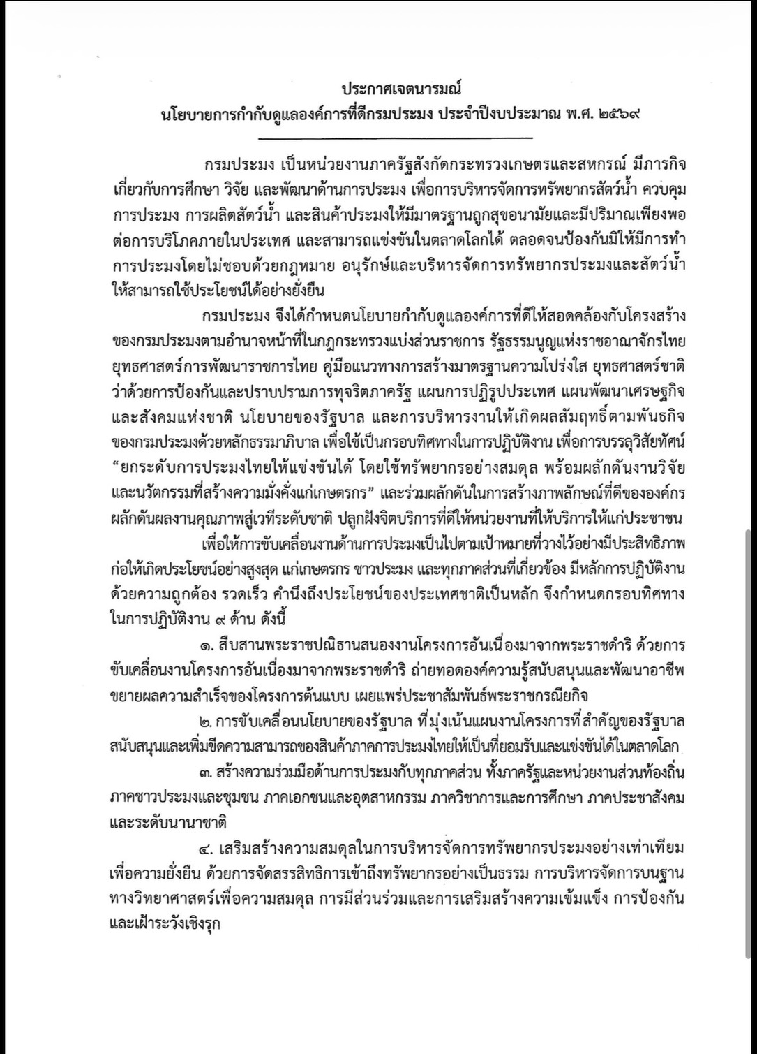 ประกาศเจตนารมณ์ นโยบายการกำกับดูแลองค์การที่ดีกรมประมง ประจำปีงบประมาณ พ.ศ. 2569