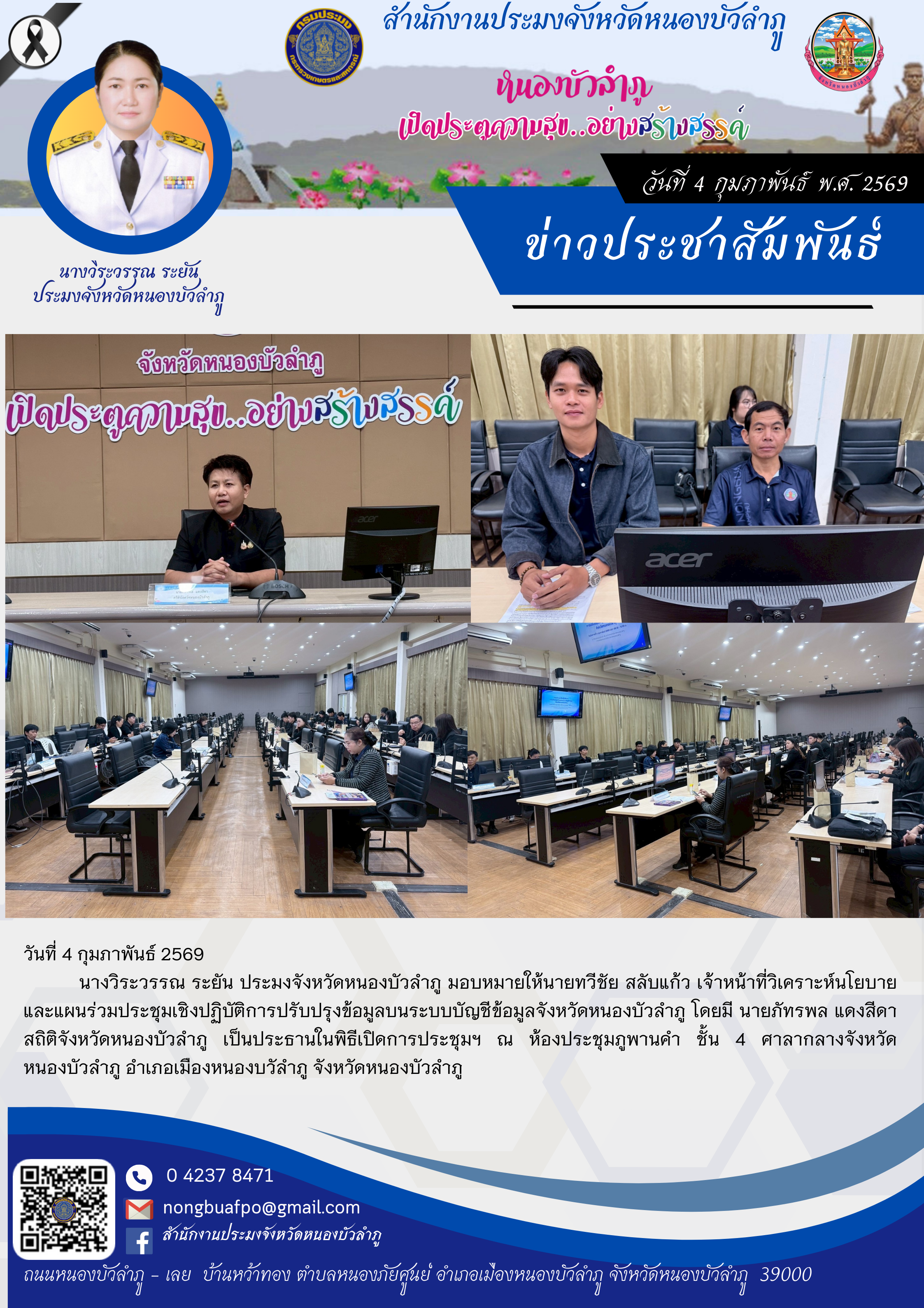 ร่วมประชุมเชิงปฏิบัติการปรับปรุงข้อมูลบนระบบบัญชีข้อมูลจังหวัดหนองบัวลำภู