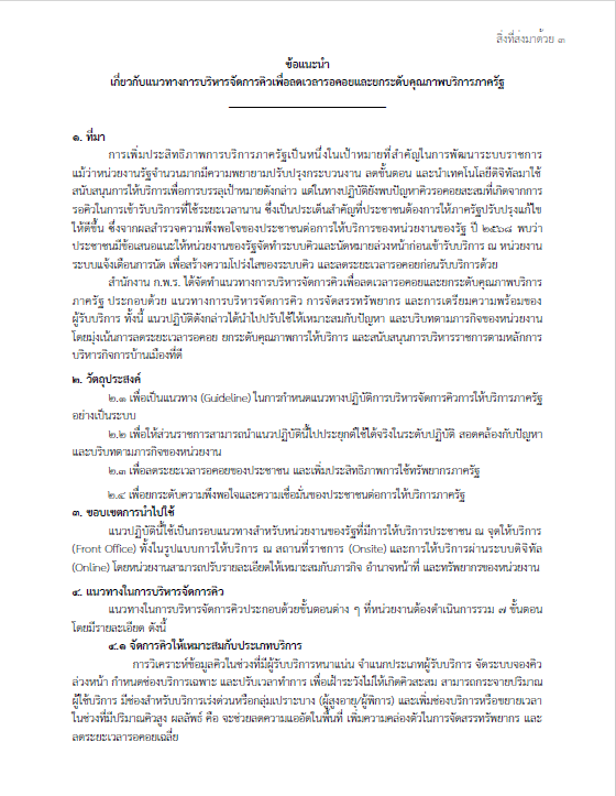 ผลสำรวจความพึงพอใจของประชาชนต่อการให้บริการของหน่วยงานภาครัฐ ปี 2568 และ ข้อแนะนำเกี่ยวกับแนวทางการบริหารจัดการคิวเพื่อลดเวลารอคอยและยกระดับคุณภาพบริการภาครัฐ จากสำนักงาน ก.พ.ร.