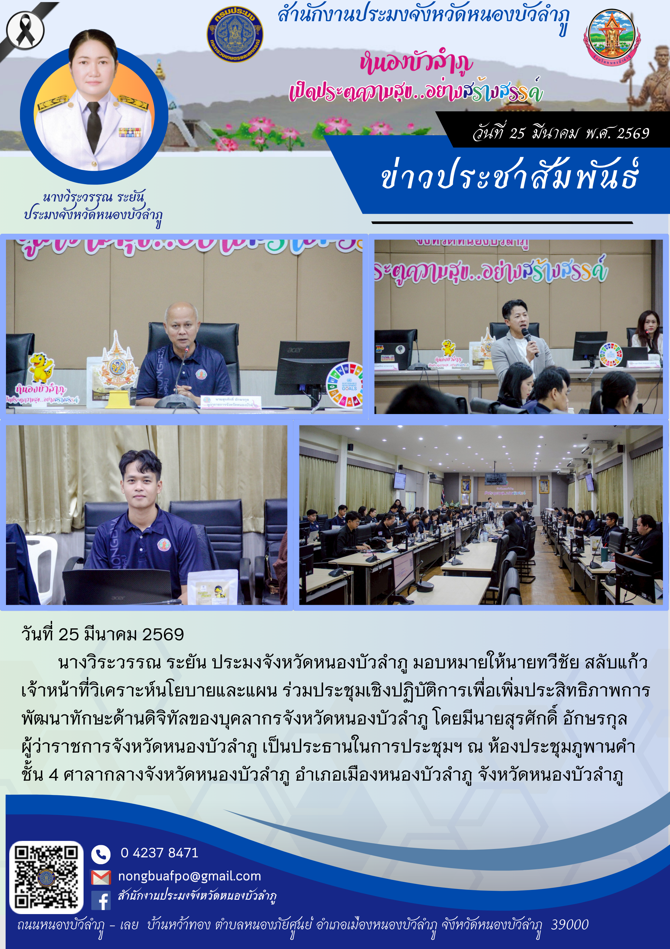 ร่วมประชุมเชิงปฏิบัติการเพื่อเพิ่มประสิทธิภาพการพัฒนาทักษะด้านดิจิทัลของบุคลากรจังหวัดหนองบัวลำภู