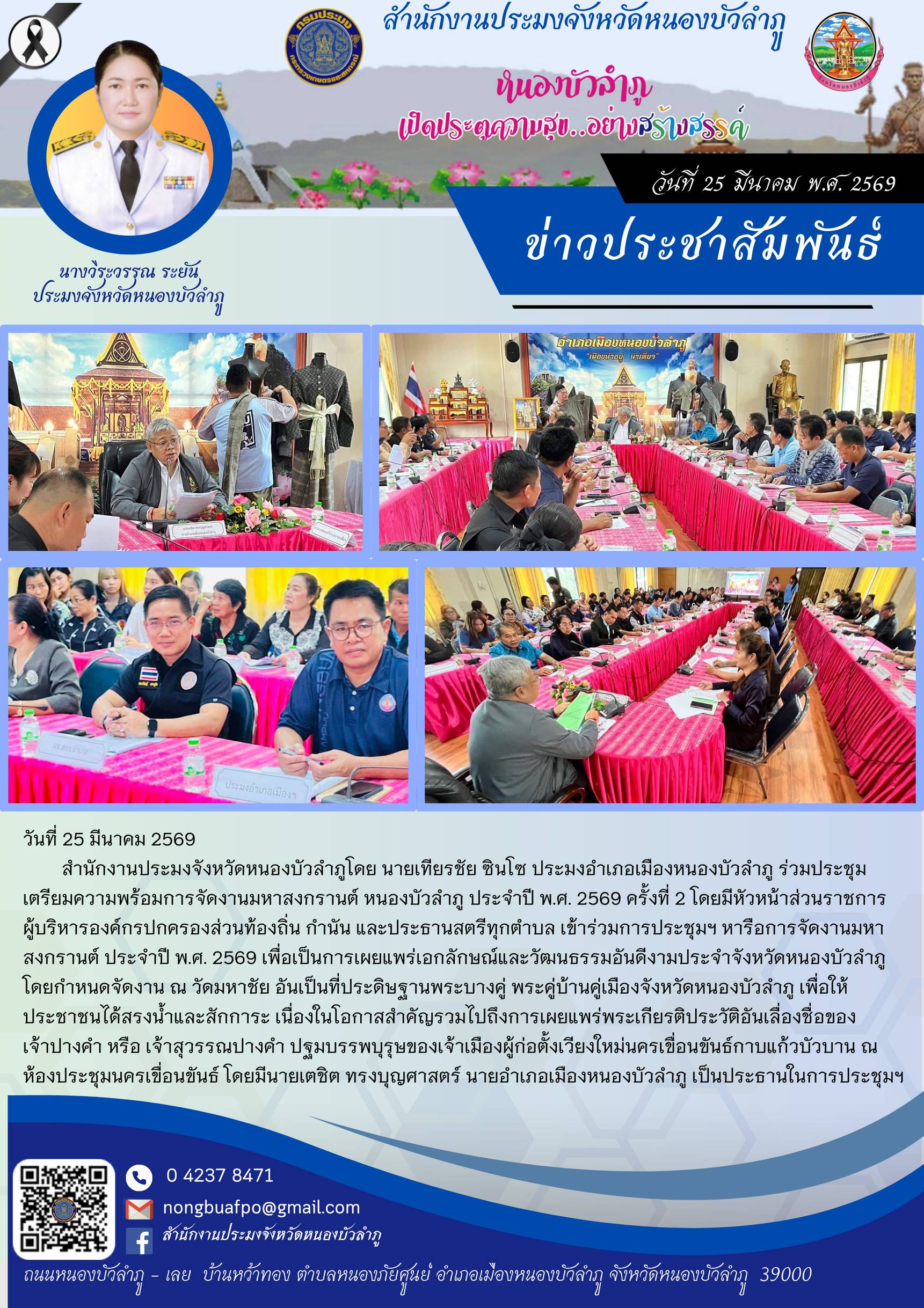 ร่วมประชุมเตรียมความพร้อมการจัดงานมหาสงกรานต์ หนองบัวลำภู ประจำปี พ.ศ. 2569 ครั้งที่ 2