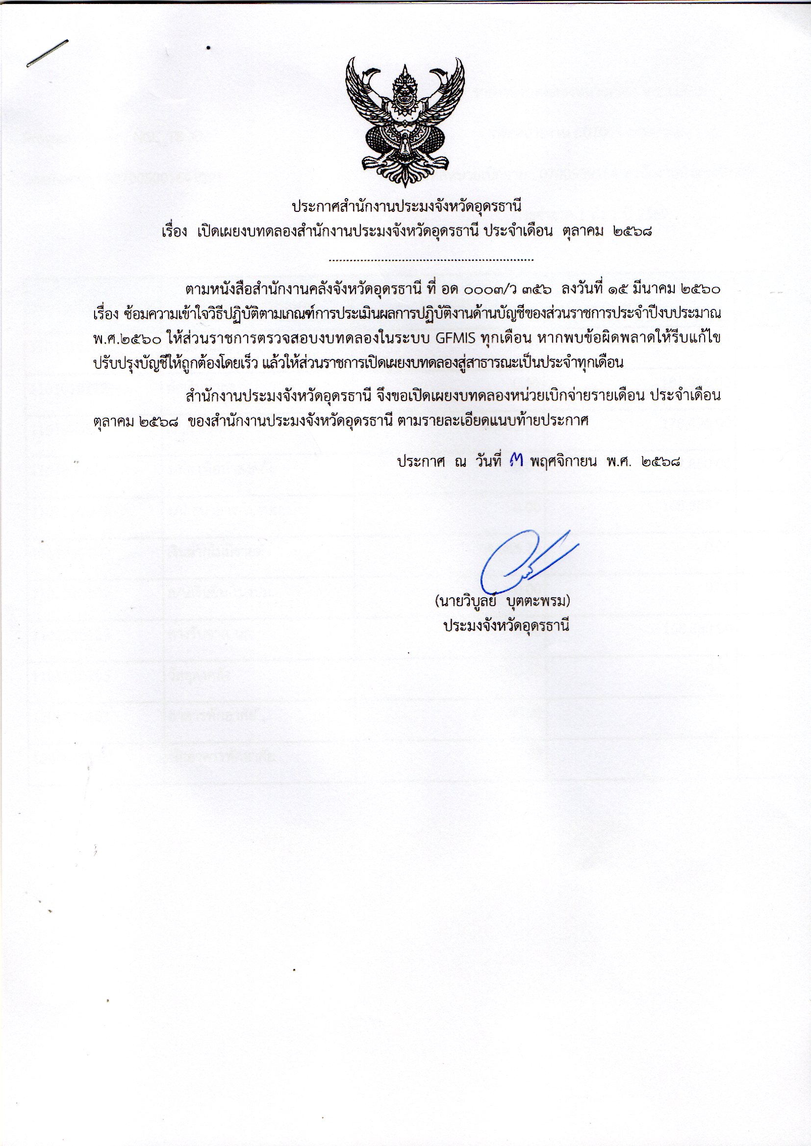 ประกาศสำนักงานประมงจังหวัดอุดรธานี เรื่อง เปิดเผยงบทดลองสำนักงานประมงจังหวัดอุดรธานี ประจำเดือน ตุลาคม 2568