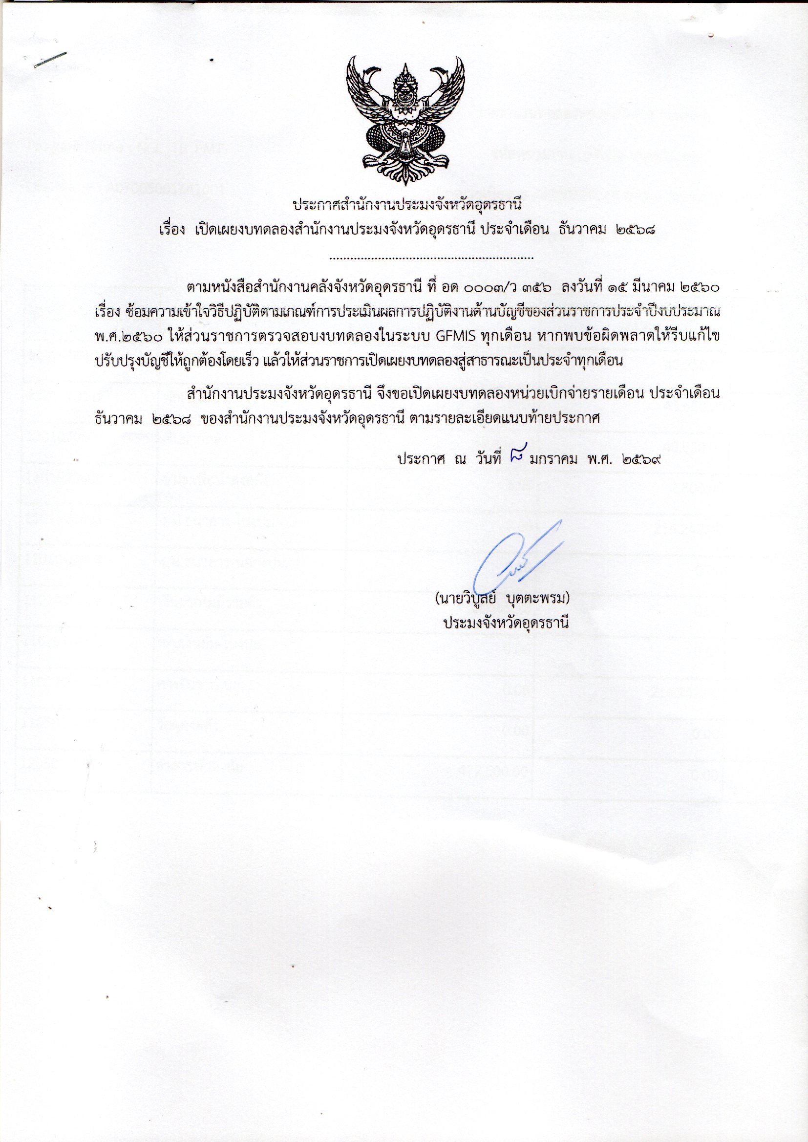 ประกาศสำนักงานประมงจังหวัดอุดรธานี เรื่อง เปิดเผยงบทดลองสำนักงานประมงจังหวัดอุดรธานี ประจำเดือน ธันวาคม 2568