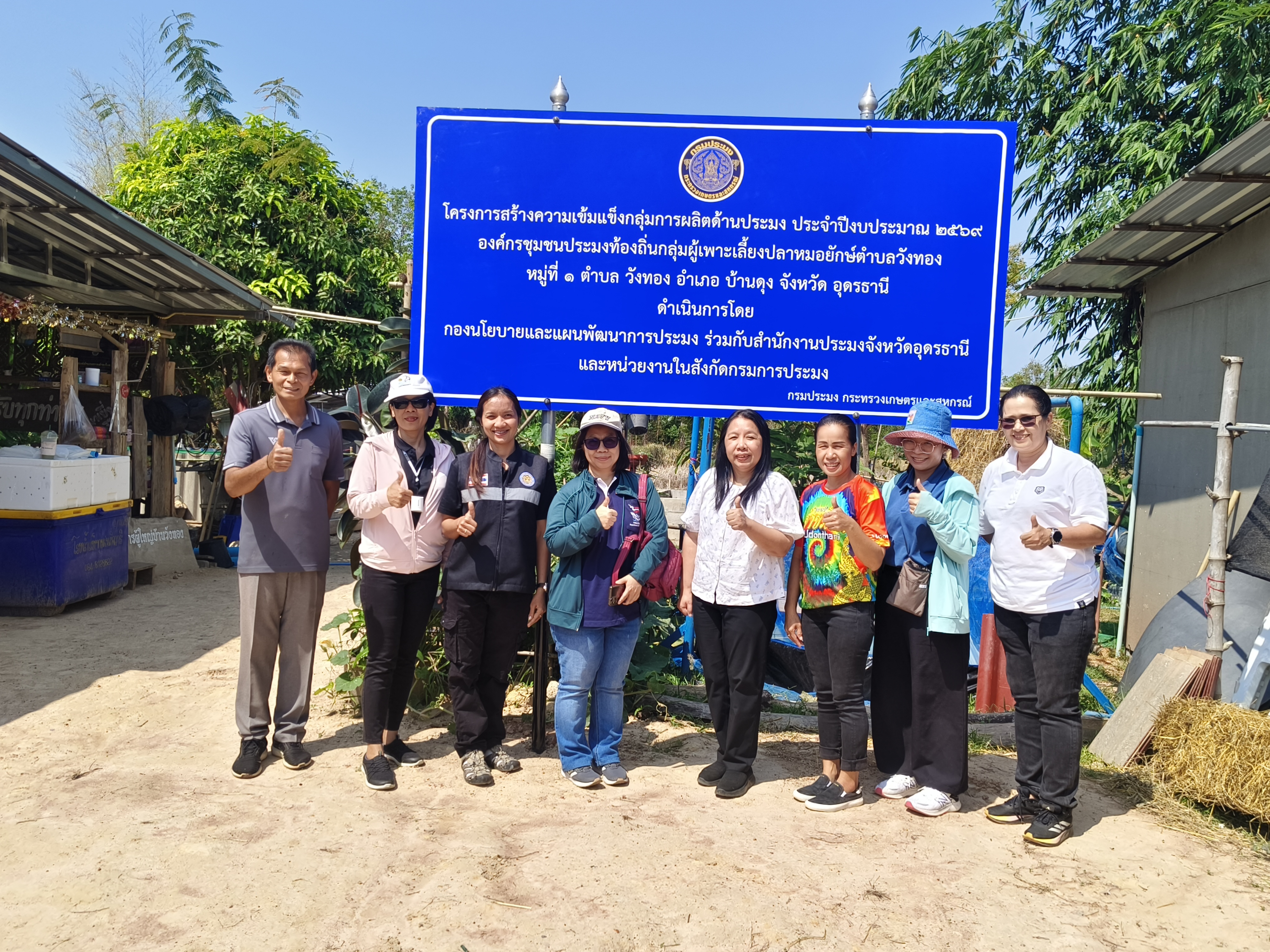 วันที่ 10 มีนาคม 2569  นางเอ็นดู สำรวมรัมย์ ประมงอำเภอบ้านดุง นางสาวพลอยศิริ เจริญศิรื เจ้าพนักงานประมงชำนาญงาน  นำเจ้าหน้าที่จาก กองนโยบายและแผนพัฒนาการประมง กรมประมง เข้าตรวจเยี่ยมผลการดำเนินการ กลุ่มชุมชนประมงท้องถิ่น ในโครงการสร้างความเข้มแข็งกลุ่มการผลิตด้านประมง ประจำปี 2569 จำนวน  2 กลุ่ม เขตตำบลวังทอง อำเภอบ้านดุง จังหวัดอุดรธานี
