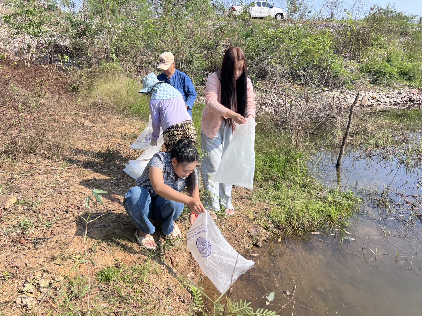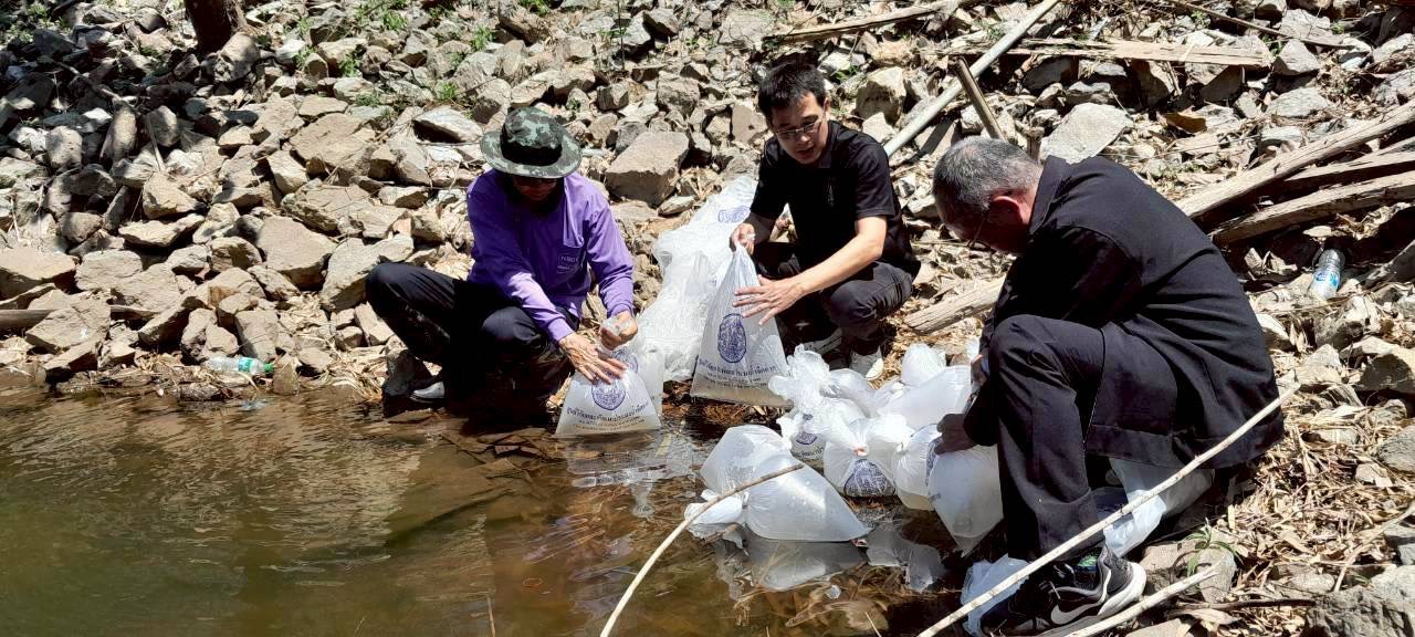 เจ้าพนักงานประมงชำนาญงาน นายณัฐดนัย เมาใจ เจ้าพนักงานประมง ดำเนินการปล่อยพันธุ์กุ้งก้ามกราม ลงแหล่งน้ำในพื้นที่
