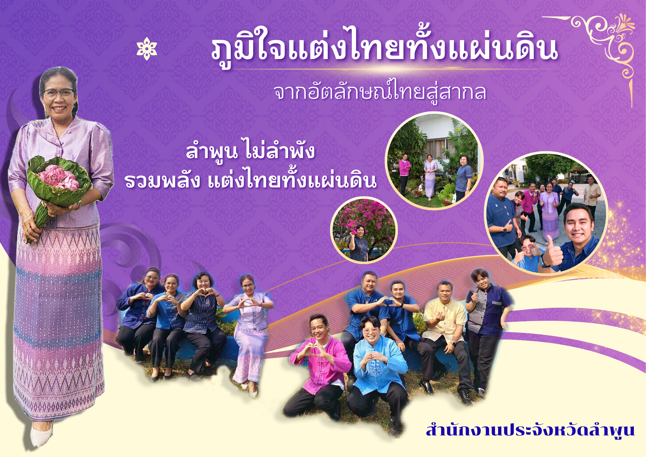 นางพรทิพย์ นวลอนงค์ ประมงจังหวัดลำพูน นำข้าราชการ พนักงานเจ้าหน้าที่ ร่วมรณรงค์การแต่งกาย ตามอัตลักษณ์ไทยสู่สากล ภายใต้แนวคิด "ภูมิใจแต่งไทยทั้งแผ่นดิน"