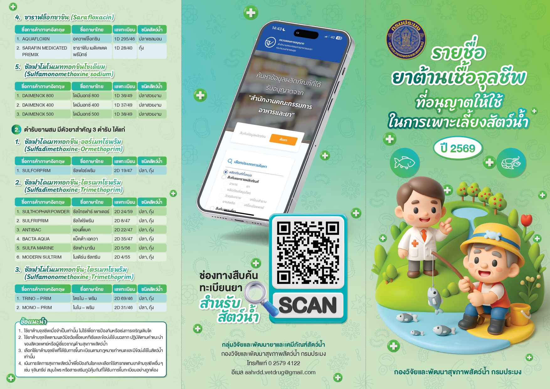 เรื่อง "รายชื่อยาต้านจุลชีพที่อนุญาตให้ใช้ในการเพาะเลี้ยงสัตว์น้ำ ปี 2569"