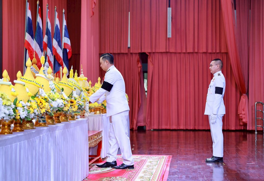 พิธีวางพานพุ่มดอกไม้สดถวายราชสักการะน้อมรำลึกในพระมหากรุณาธิคุณ พระบาทสมเด็จพระบรมชนกาธิเบศร มหาภูมิพลอดุลยเดชมหาราช บรมนาถบพิตร เนื่องในวันพระบิดาแห่งฝนหลวง