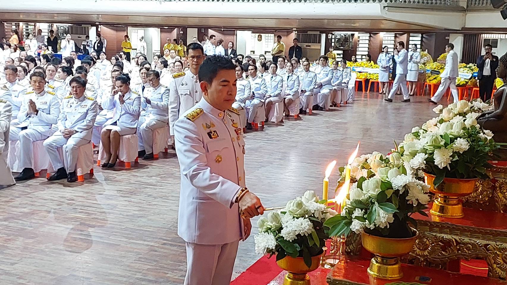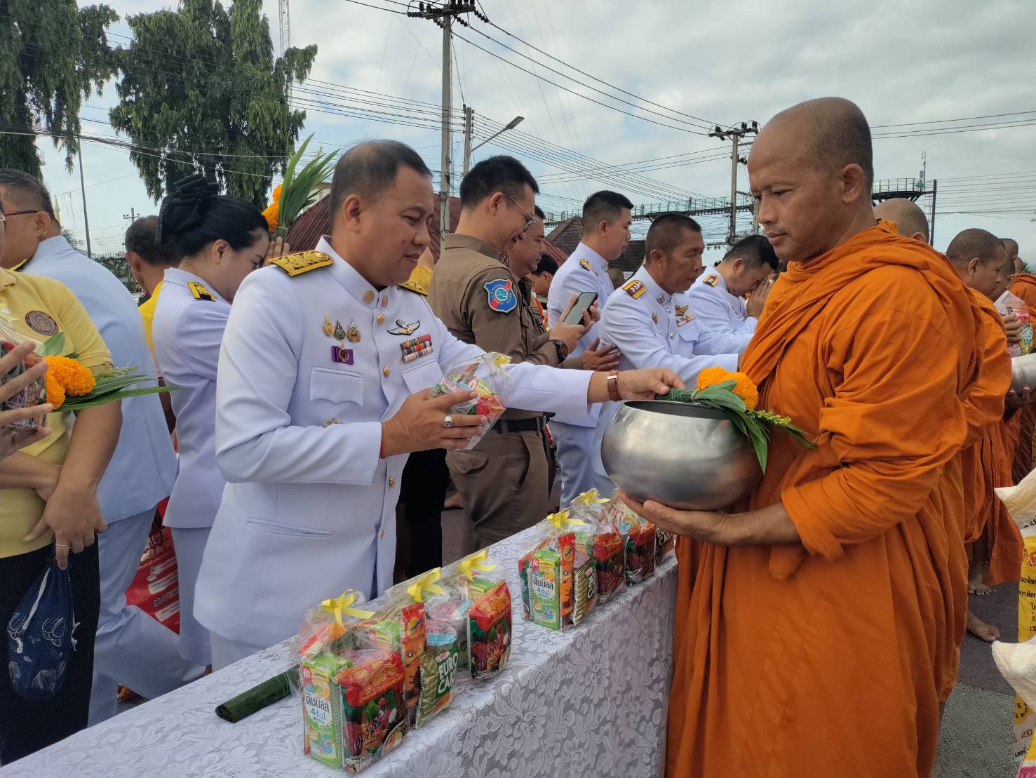 เข้าร่วมพิธีทำบุญตักบาตรและวางพวงมาลา เนื่องในวันนวมินทรมหาราช