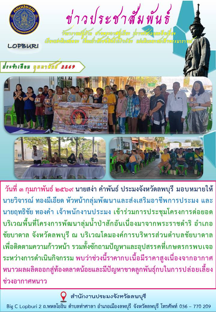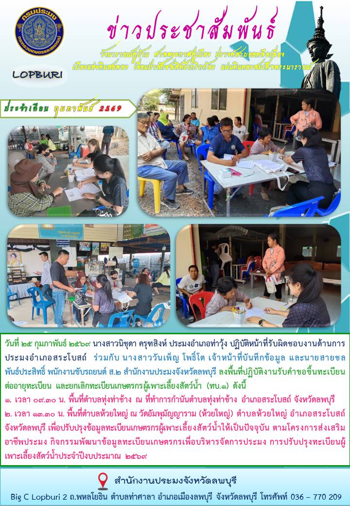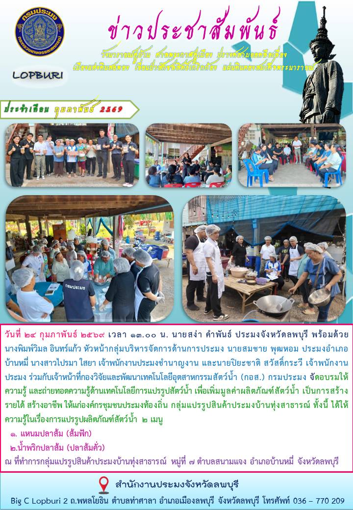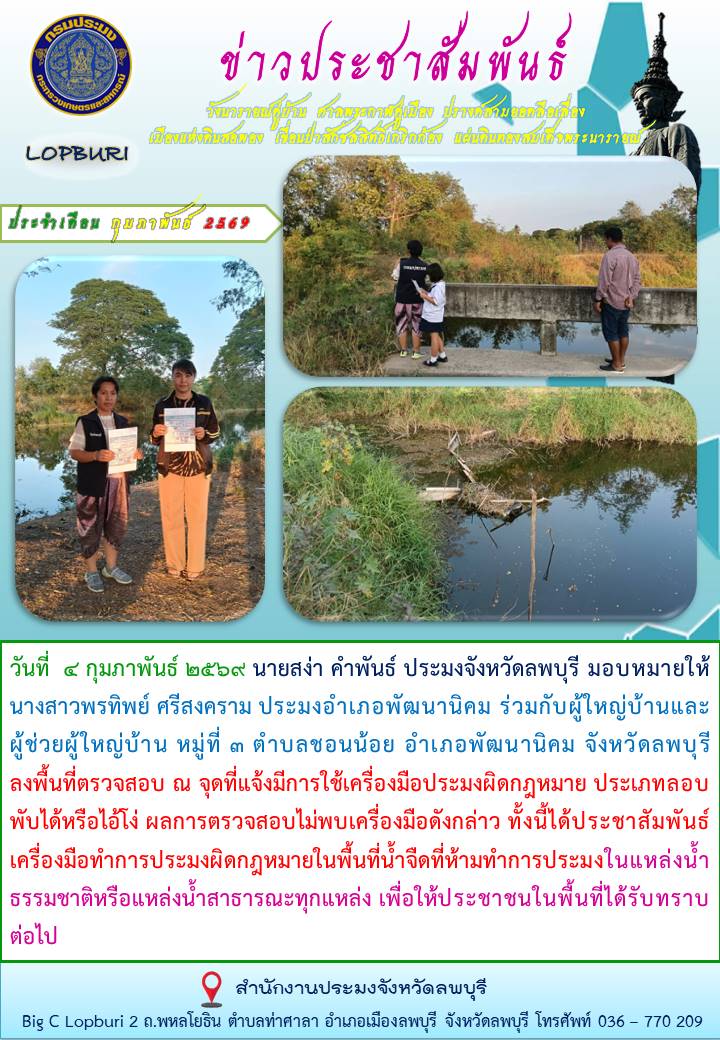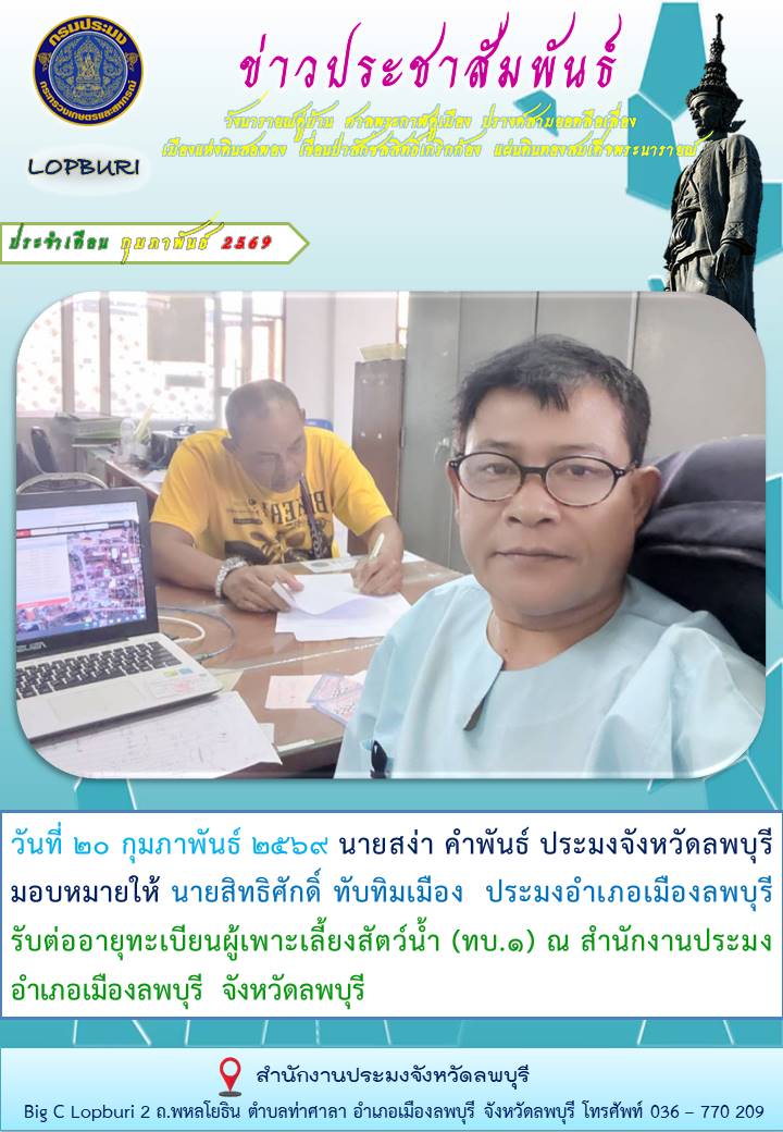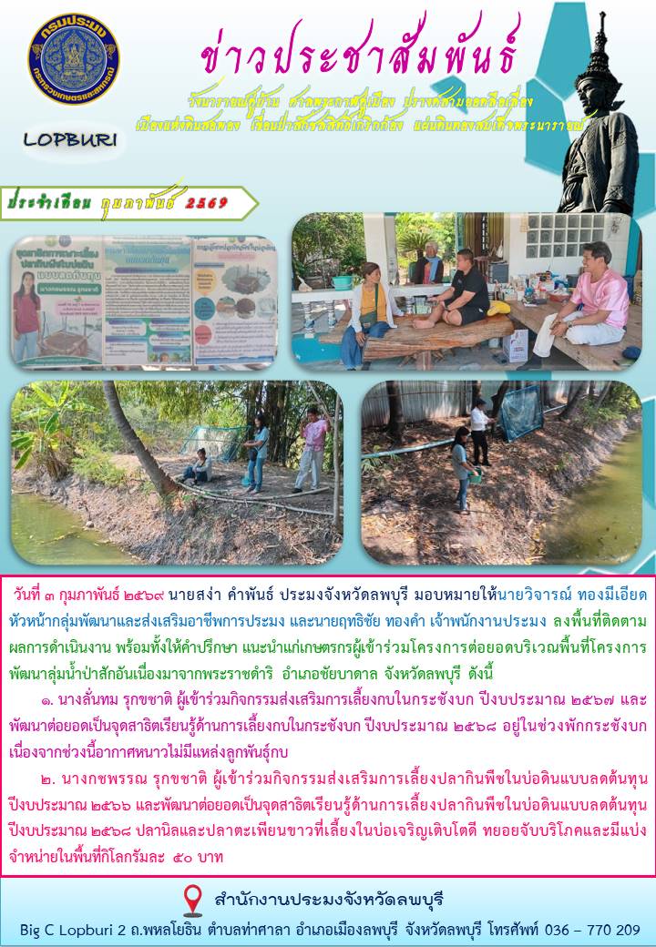 [2026-03-05] การขายทอดตลาดครุภัณฑ์ชำรุด.. [2026-03-04] ข่าวประชาสัมพันธ์ ประจำเดือน กุมภาพันธ์ พ.ศ.2569.. [2026-02-25] คำสั่งจังหวัดลพบุรี เรื่อง แต่งตั้งกรรมการผู้ทรงคุณวุฒิในคณะกรรมการประ.. [2026-02-02] ข่าวประชาสัมพันธ์ ประจำเดือน มกราคม พ.ศ.2569.. [2026-01-28] การรับสมัครบุคคลเข้ารับการคัดเลือกเพื่อแต่งตั้งเป็นกรรมการผู้ทรงคุณวุฒ.. [2026-01-28] การลงนามรับทราบประกาศเจตนารมณ์ "สุจริต โปร่งใส งดรับ งดให้" ของขวัญ ขอ.. [2026-01-21] งานแผ่นดินสมเด็จพระนารายณ์มหาราช ประจำปี 2569 ตั่งแต่ 13 - 22 กุมภาพัน.. [2026-01-15] นโยบายการกำกับดูแลองค์การที่ดี กรมประมง ประจำปีงบประมาณ พ.ศ. 2569.. [2026-01-05] ข่าวประชาสัมพันธ์ ประจำเดือน ธันวาคม พ.ศ.2568.. [2025-12-01] ข่าวประชาสัมพันธ์ ประจำเดือน พฤศจิกายน พ.ศ.2568.. อ่านทั้งหมด