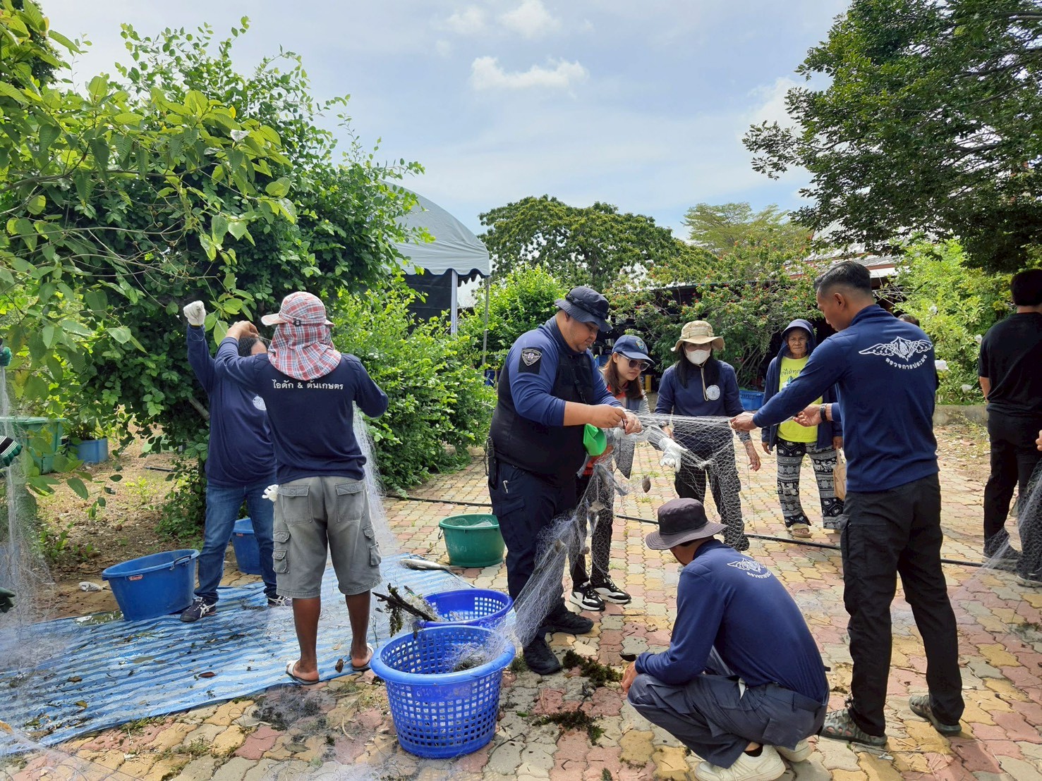 วันที่ 8 ตุลาคม 2568 เวลา 09.30 น. สำนักงานประมงจังหวัดเพชรบุรี พร้อมด้วยอำเภอบ้านแหลม หัวหน้าส่วนราชการหน่วยงานสังกัดกรมประมง องค์กรปกครองส่วนท้องถิ่น เรือนจำกลางเพชรบุรี เจ้าหน้าที่กรมประมง ประมงอำเภอ ผู้นำชุมชน กำนัน ผู้ใหญ่ องค์กรชุมชนประมงท้องถิ่น ผู้แทนบริษัทเจริญโภคภัณฑ์อาหาร จำกัด (มหาชน) ชาวประมง และประชาชนในพื้นที่ จัดกิจกรรมลงแขกลงคลองกำจัดปลาหมอคางดำในแหล่งน้ำพื้นที่จังหวัดเพชรบุรี โดยมีนายประจวบ เจี้ยงยี่ ประมงจังหวัดเพชรบุรี เป็นประธานเปิดกิจกรรมดังกล่าว เพื่อแก้ไขปัญหาการแพร่ระบาดของปลาหมอคางดำในพื้นที่ให้มีประสิทธิภาพ และเน้นการมีส่วนร่วมของชุมชนในการบริหารจัดการทรัพยากรสัตว์น้ำ รวมถึงสร้างการรับรู้และความตระหนักในการป้องกันผลกระทบกับทรัพยากรสัตว์น้ำพื้นถิ่นของชุมชน ตามมาตรการที่ 1 ควบคุมและกำจัดปลาหมอคางดำในแหล่งน้ำธรรมชาติทุกแห่งที่พบการแพร่ระบาด และมาตรการที่ 3 การนำปลาหมอคางดำที่ถูกกำจัดออกจากระบบนิเวศไปใช้ประโยชน์ ภายใต้แผนปฏิบัติการแก้ไขปัญหาการแพร่ระบาดของปลาหมอคางดำ พ.ศ. 2567 -2570 และได้ส่งมอบปลาหมอคางดำที่จับได้ให้กับองค์กรชุมชนประมงท้องถิ่น เพื่อนำไปใช้ประโยชน์ต่อไป ณ บริเวณคลองชลประทาน หมู่ 5 ตำบลบ้านแหลม อำเภอบ้านแหลม จังหวัดเพชรบุรี