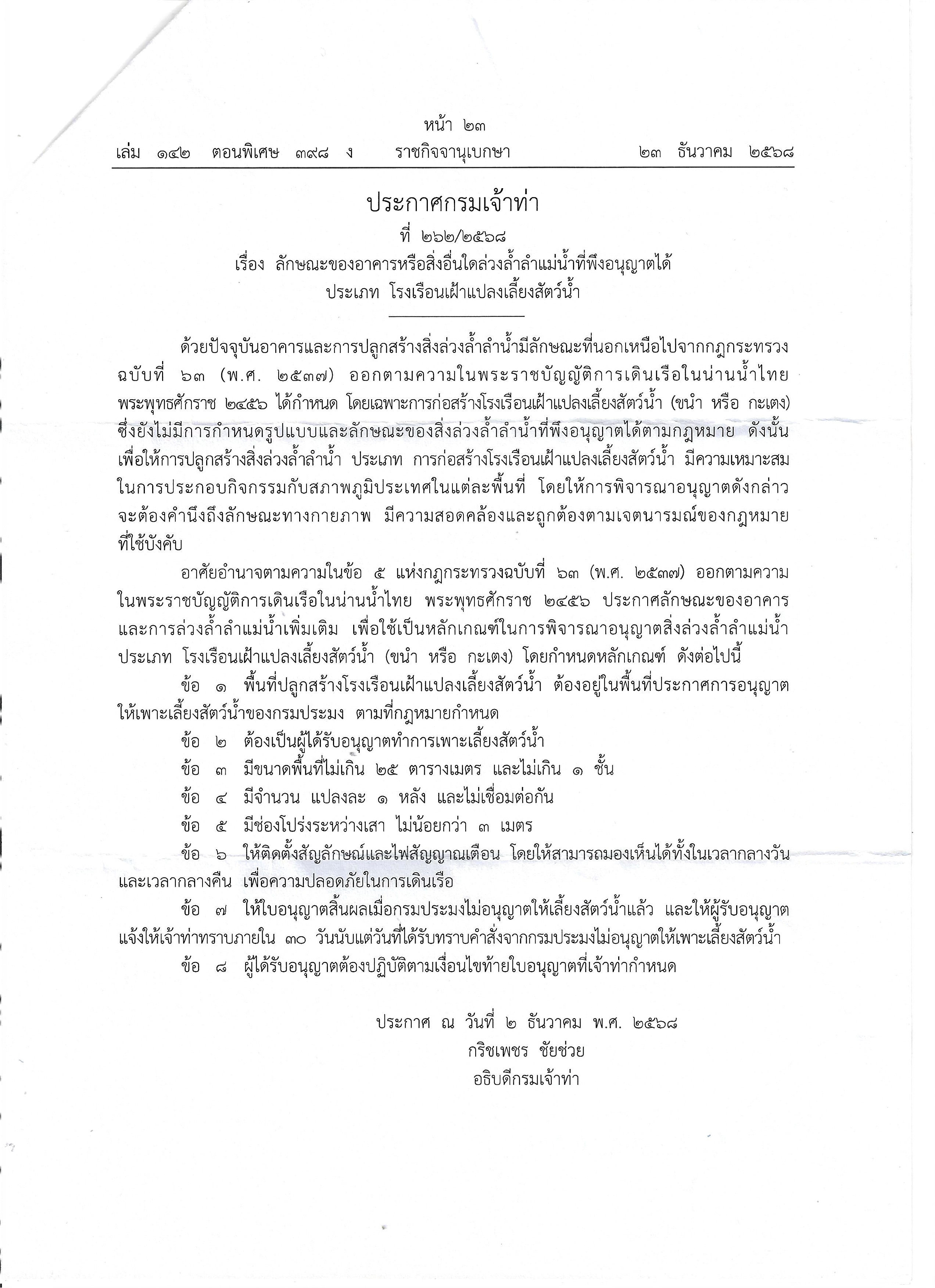 ประกาศกรมเจ้าท่าที่ 262/2568