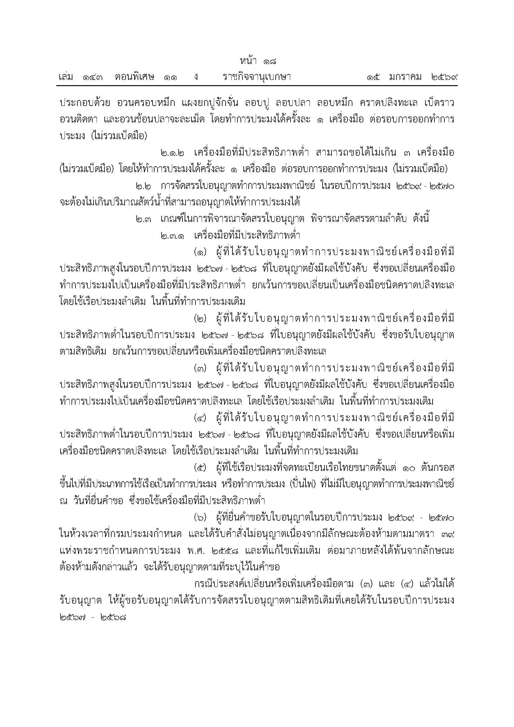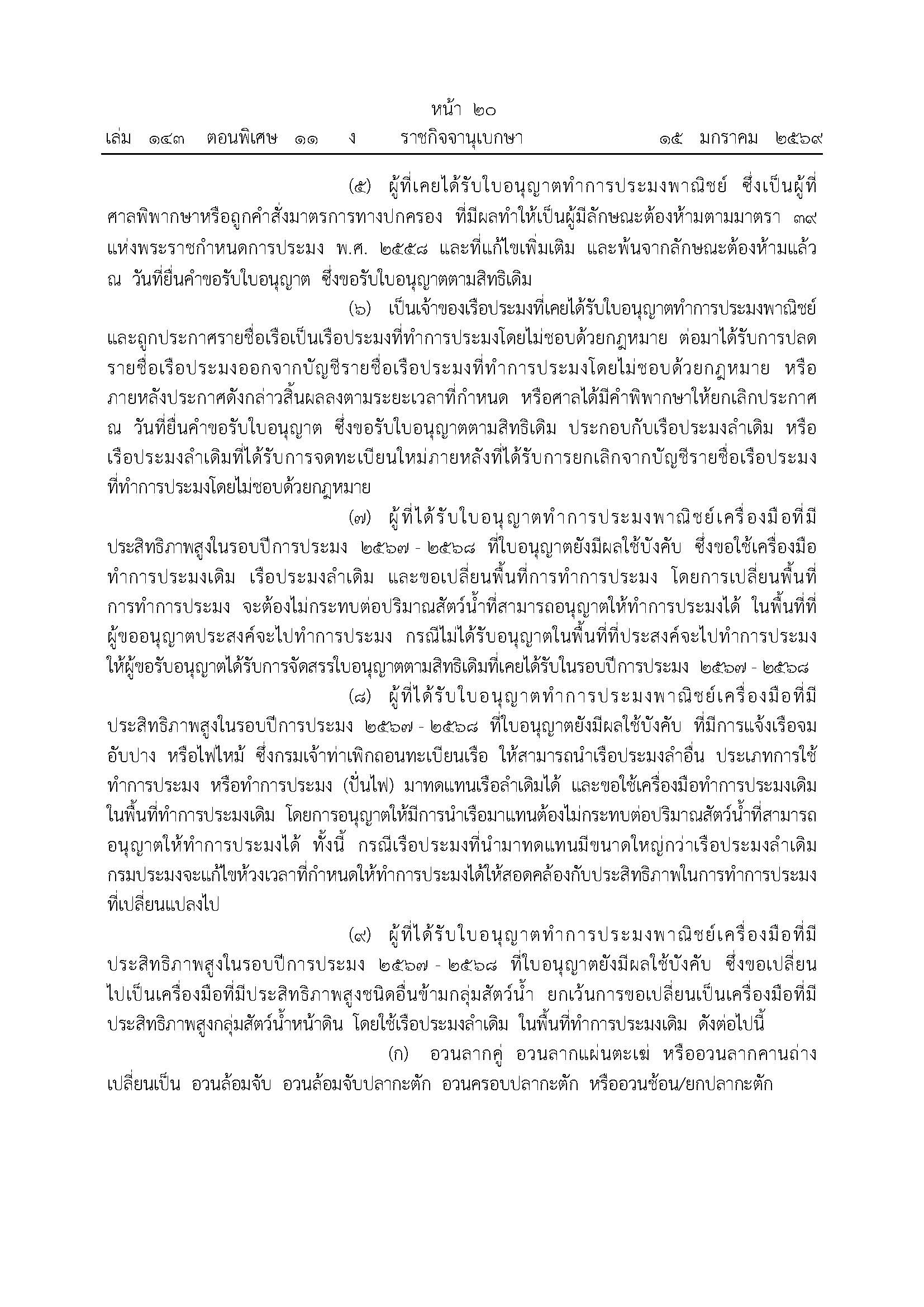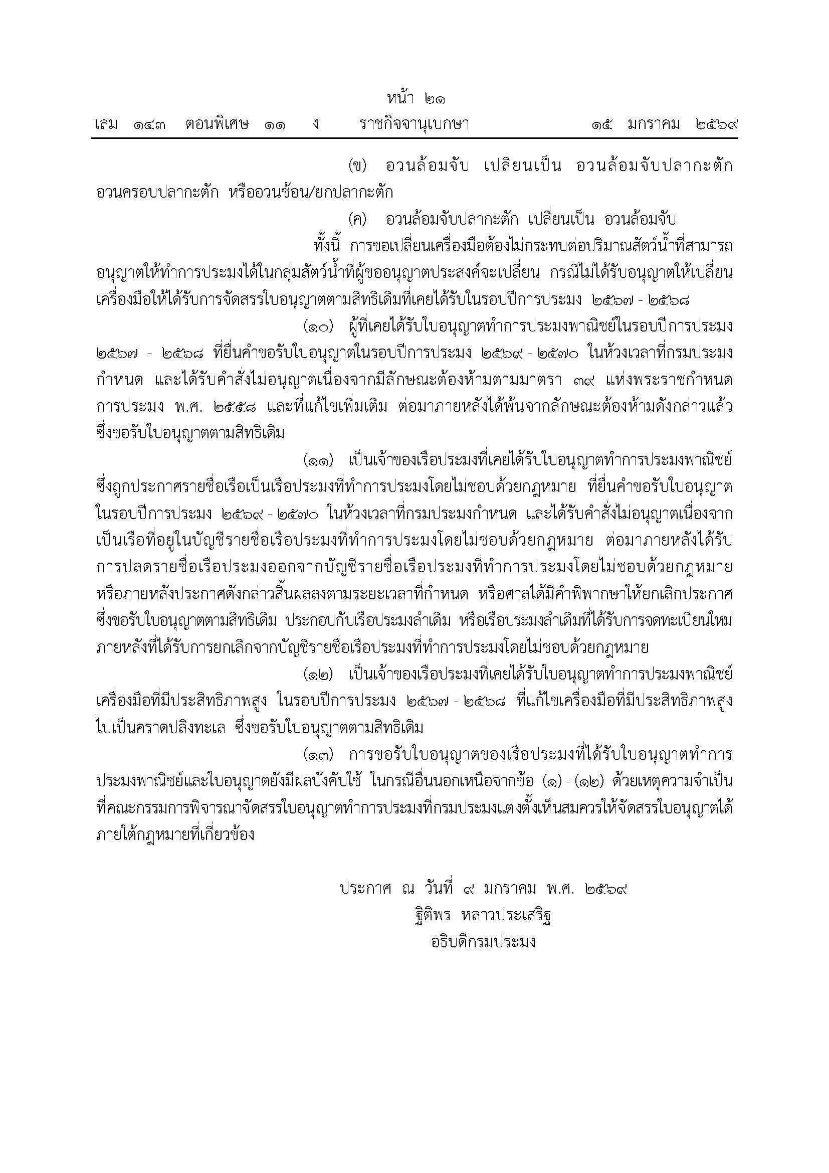 ประกาศกรมประมง เรื่อง แนวทางในการออกใบอนุญาต และหลักเกณฑ์การจัดสรรใบอนุญาตทำการประมงพาณิชย์ สำหรับรอบปีการประมง 2569-2570  พ.ศ. 2569