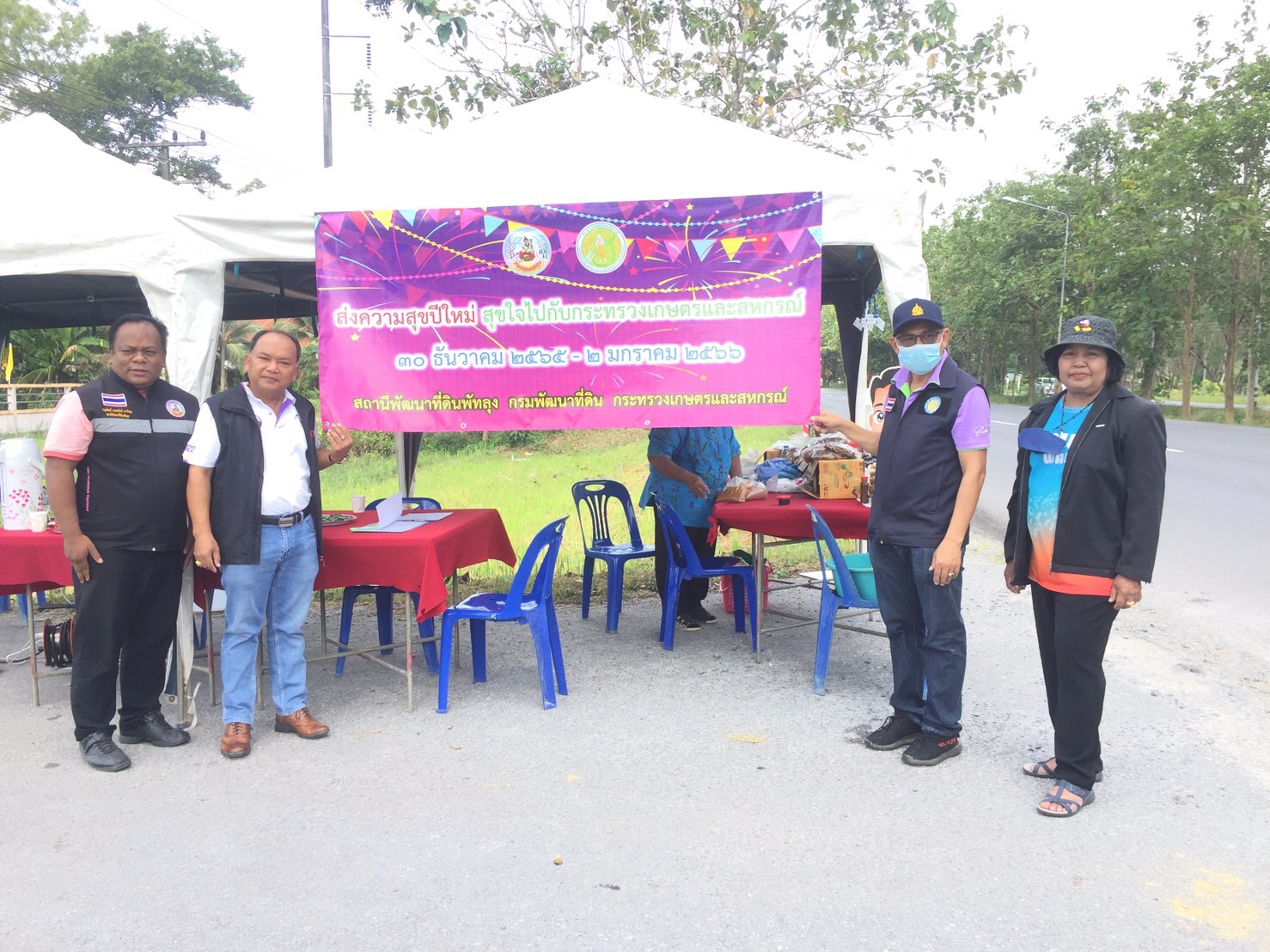 ประมงจังหวัดพัทลุง ร่วมกับ ผอ.สถานีพัฒนาที่ดินพัทลุง เปิดศูนย์บริการประชาชน ระหว่างการเดินทาง ช่วงเทศกาลส่งท้ายปีเก่าต้อนรับปีใหม่ ระหว่างวันที่ 30 ธันวาคม 2565 ถึง วันที่ 2 มกราคม 2566