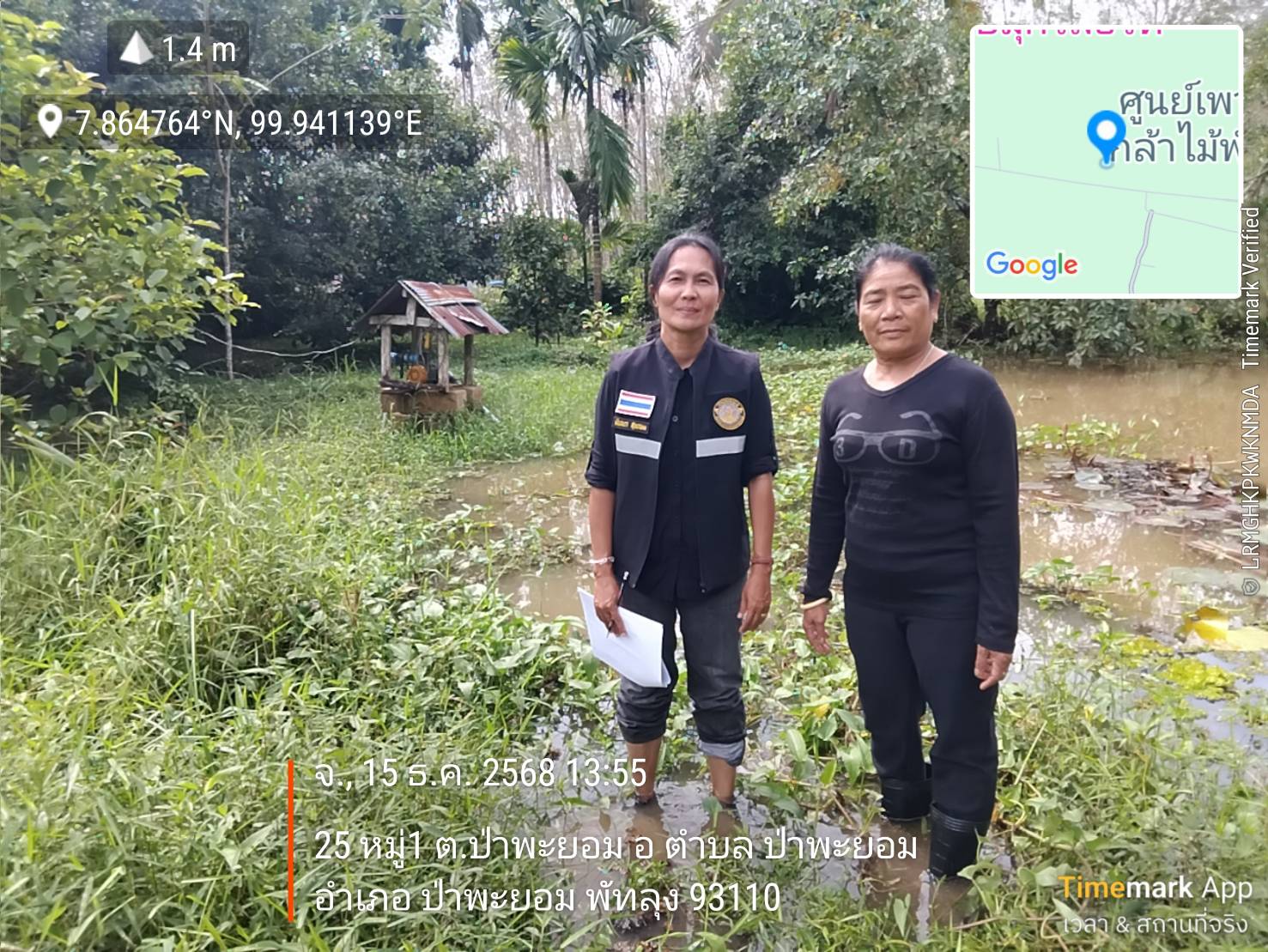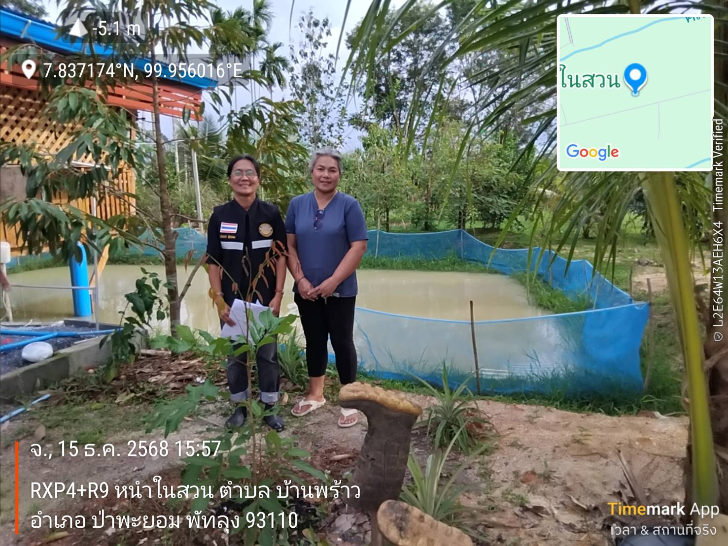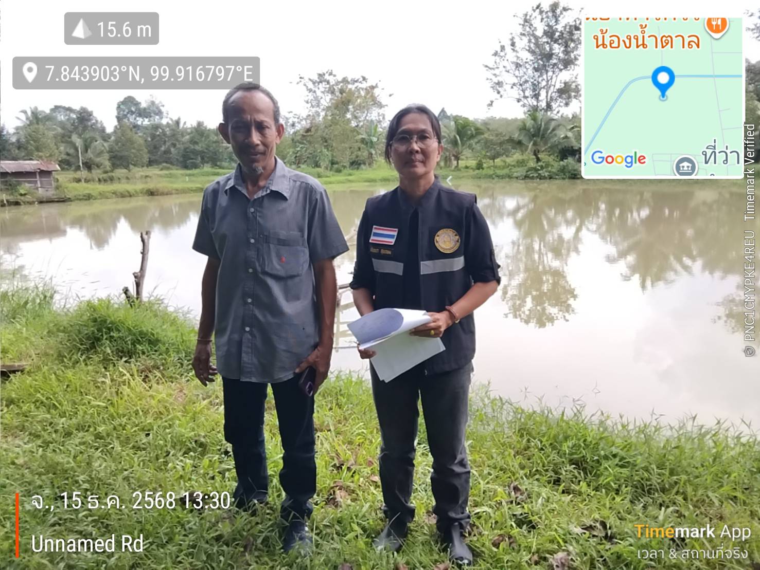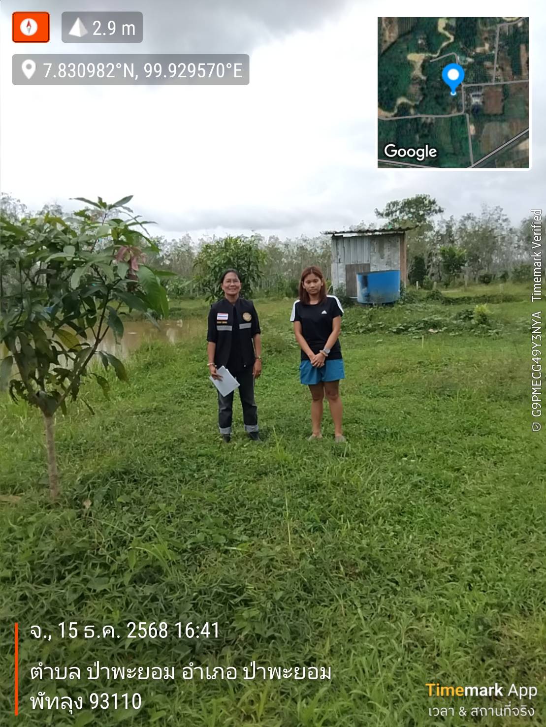 วันที่ 15 ธันวาคม 2568 นายภูษิต จันทร์เพชร ประมงจังหวัดพัทลุง มอบหมายให้ นางมัณฑนา สุขเกษม เจ้าพนักงานประมงปฎิบัติงาน กลุ่มบริหารจัดการด้านการประมง รับผิดชอบอำเภอป่าพะยอม ลงพื้นที่ตรวจสอบความเสียหายของเกษตรกรที่ยื่นแบบความจำนงขอรับความช่วยเหลือของเกษตรกรที่ประสบภัยพิบัติ (ด้านประมง)ในพื้นที่ตำบลป่าพะยอม และตำบลบ้านพร้าว อำเภอป่าพะยอม จังหวัดพัทลุง