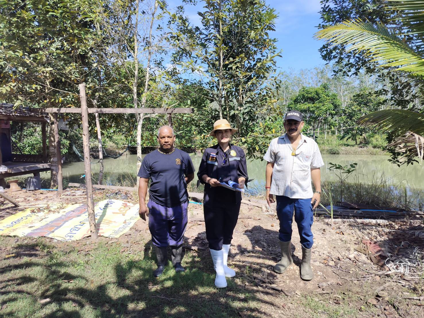 ประมงอำเภอป่าบอน ร่วมกับผู้ใหญ่บ้าน และ ประมงอาสา ลงพื้นที่ตรวจสอบความเสียหายของเกษตรกร ผู้เพาะเลี้ยงสัตว์น้ำ ที่ยื่นแบบความจำนงขอรับความช่วยเหลือของเกษตรกรที่ประสบภัยพิบัติ(ด้านประมง) พื้นที่ตำบลโคกทราย ตำบลทุ่งนารี และตำบลป่าบอน อำเภอป่าบอน จังหวัดพัทลุง