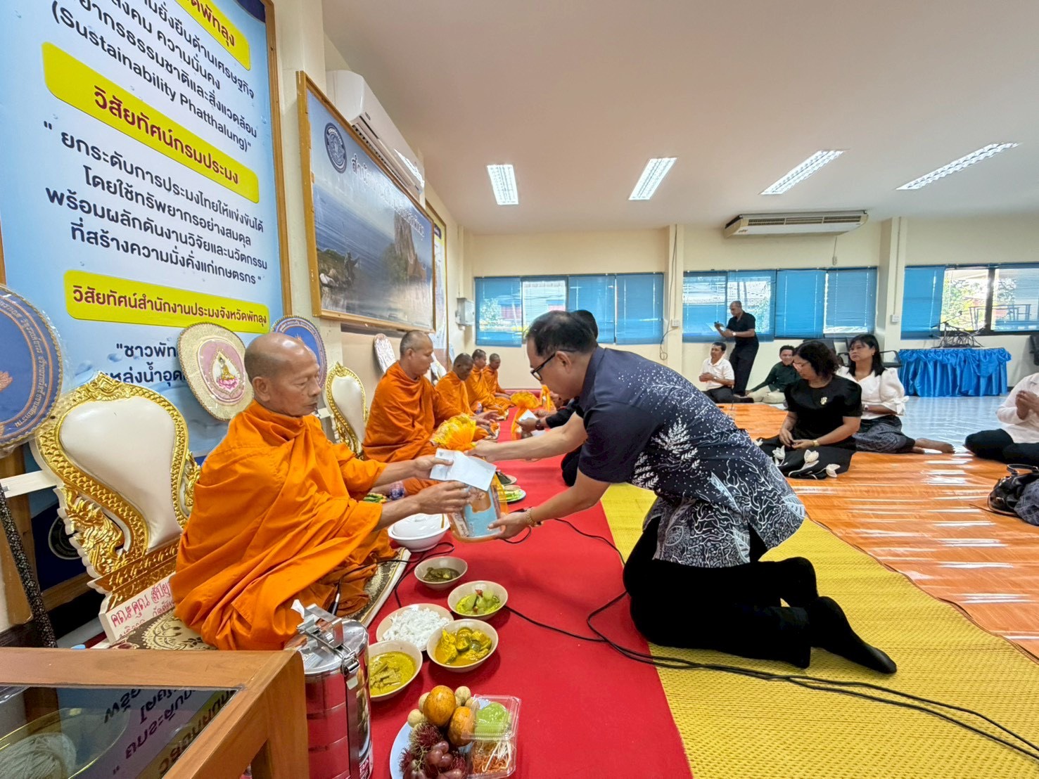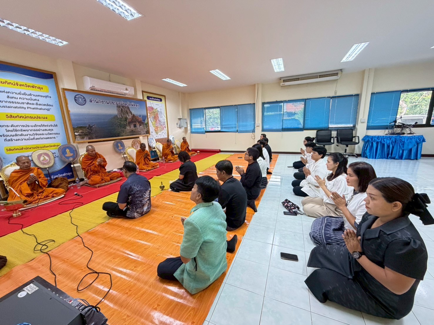 ประมงจังหวัดพัทลุง ข้าราชการ ลูกจ้างประจำ พนักงานราชการ และเจ้าหน้าที่ของสำนักงานประมงจังหวัดพัทลุง จัดพิธีทำบุญสำนักงานประมงจังหวัดพัทลุง เพื่อเสริมสร้างความเป็นสิริมงคลในการปฏิบัติงาน โดยจัดให้มีพิธีสงฆ์และถวายภัตตาหารเพล แด่พระภิกษุสงฆ์ จำนวน 5 รูป ณ ห้องประชุมสำนักงานประมงจังหวัดพัทลุง