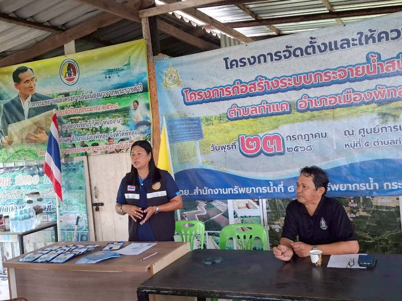 หัวหน้ากลุ่มพัฒนาและส่งเสริมอาชีพการประมง ร่วมกับ ประมงอำเภอเขาชัยสน (รับผิดชอบอำเภอเมืองพัทลุง) และ ประมงอำเภอศรีบรรพต ลงพื้นที่ถ่ายทอดองค์ความรู้ด้านประมงตามหลักปรัชญาของเศรษฐกิจพอเพียงให้แก่เกษตรกรภายใต้ โครงการพัฒนาเกษตรกรรมยั่งยืน พร้อมทั้งสนับสนุนปัจจัยการผลิต ได้แก่ พันธุ์ปลานิลแปลงเพศ จำนวน 1,500 ตัว และอาหารสัตว์น้ำ จำนวน 3 กระสอบต่อราย