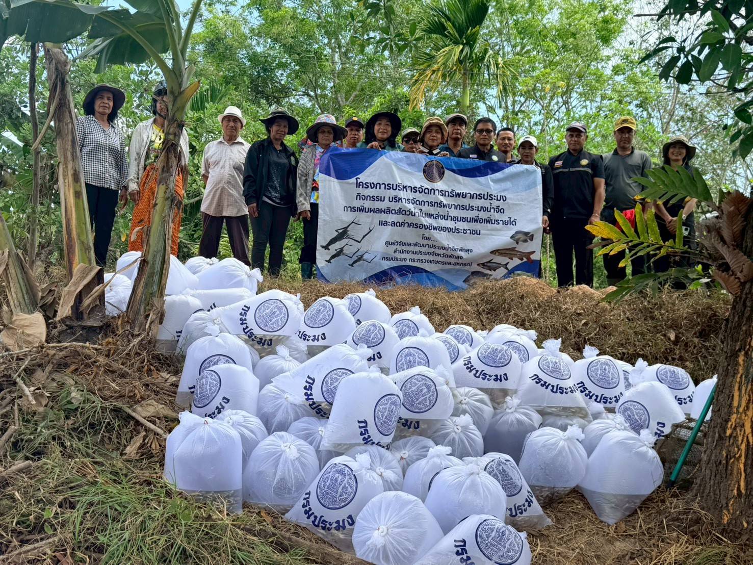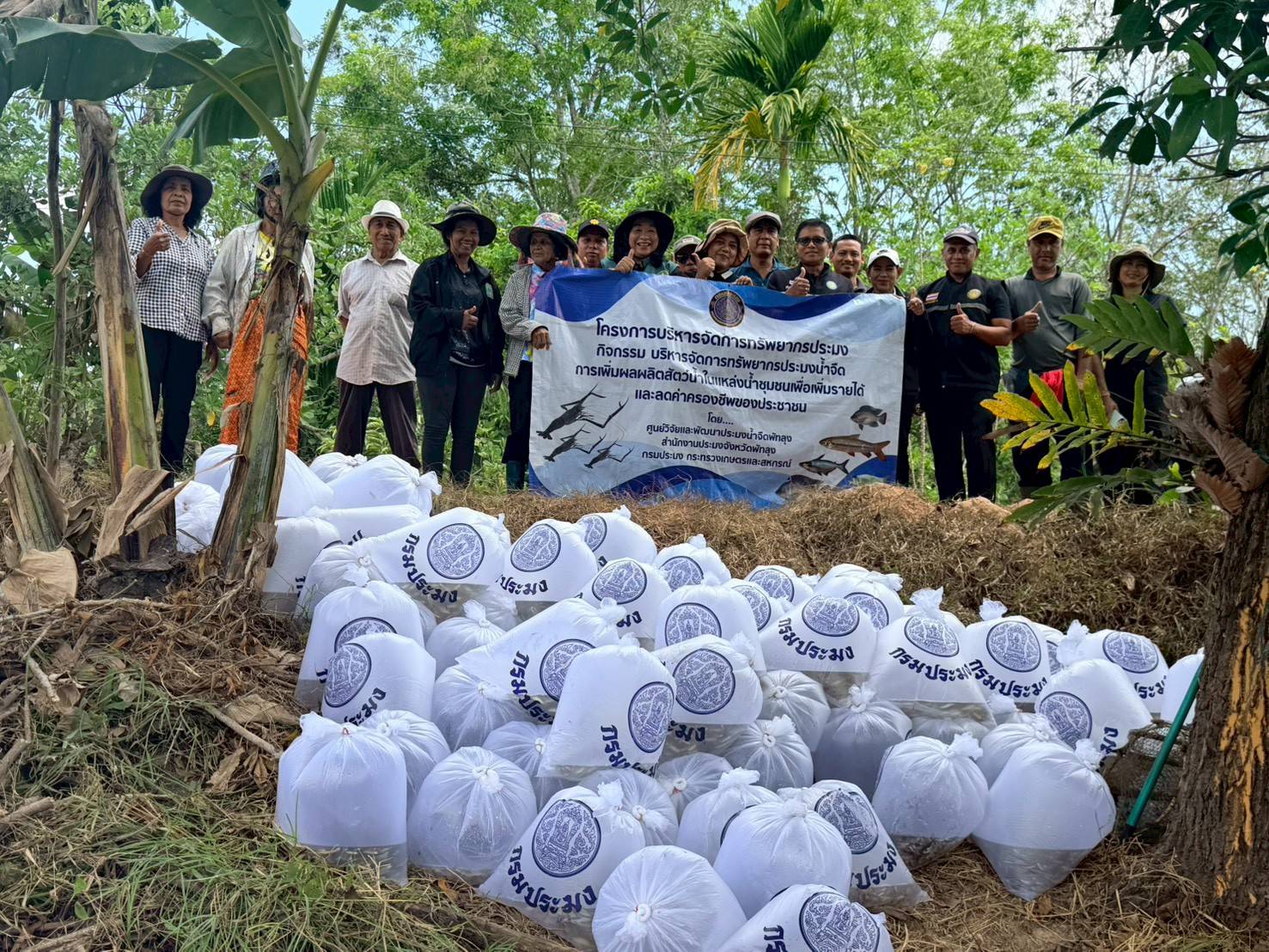 กลุ่มบริหารจัดการด้านการประมง และประมงอำเภอบางแก้ว ร่วมกับเจ้าหน้าที่ศูนย์วิจัยและพัฒนาประมงน้ำจืดพัทลุง คณะกรรมการแหล่งน้ำ ผู้ใหญ่บ้านและราษฎรในพื้นที่ ณ แหล่งน้ำบ้านครองชีพ หมู่ที่ 11 ตำบลนาปะขอ อำเภอ บางแก้ว จังหวัดพัทลุง ภายใต้โครงการบริหารจัดการทรัพยากรประมง