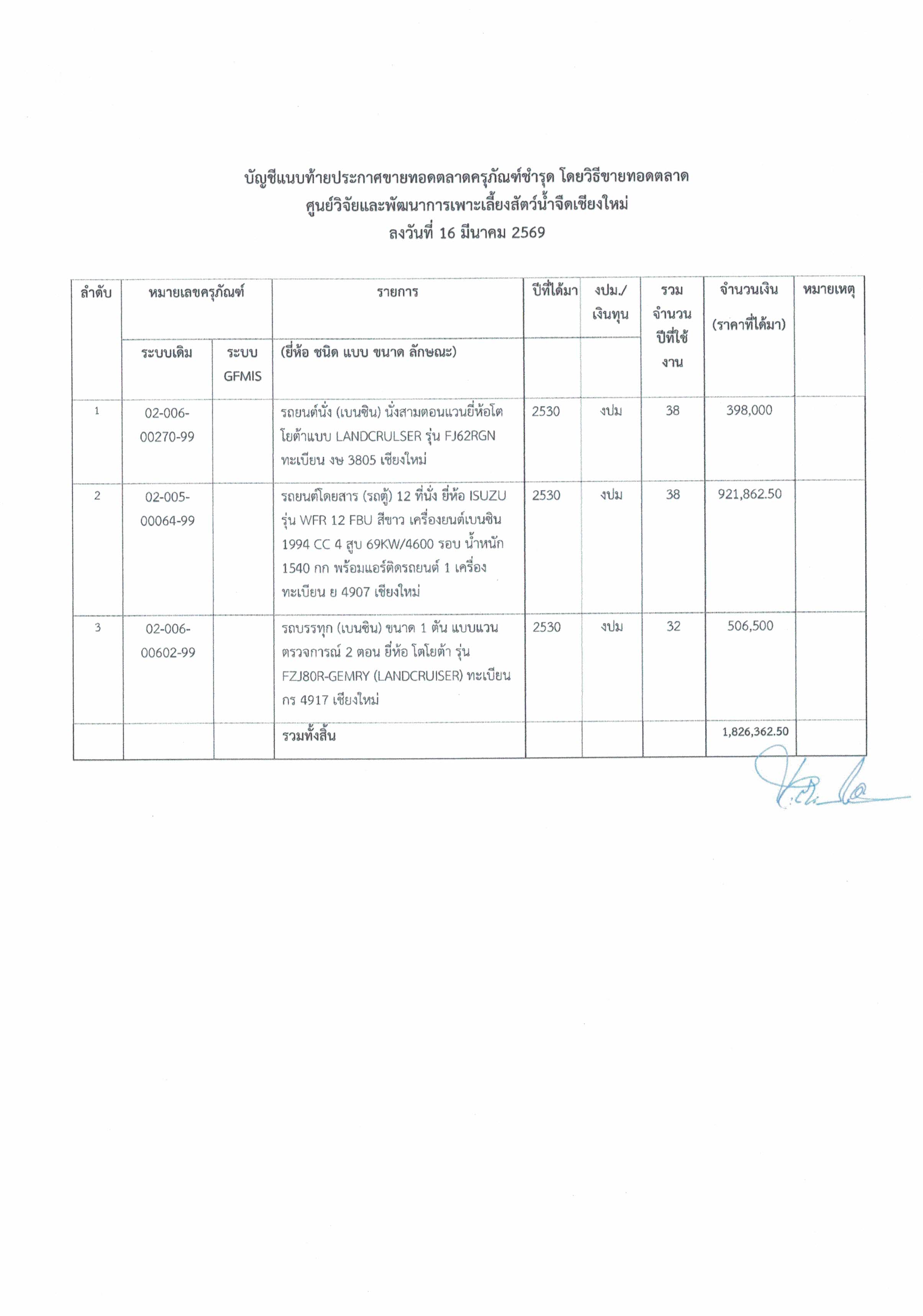 แก้ไขบัญชีแนบท้ายประกาศทอดตลาดครุภัณฑ์ชำรุด