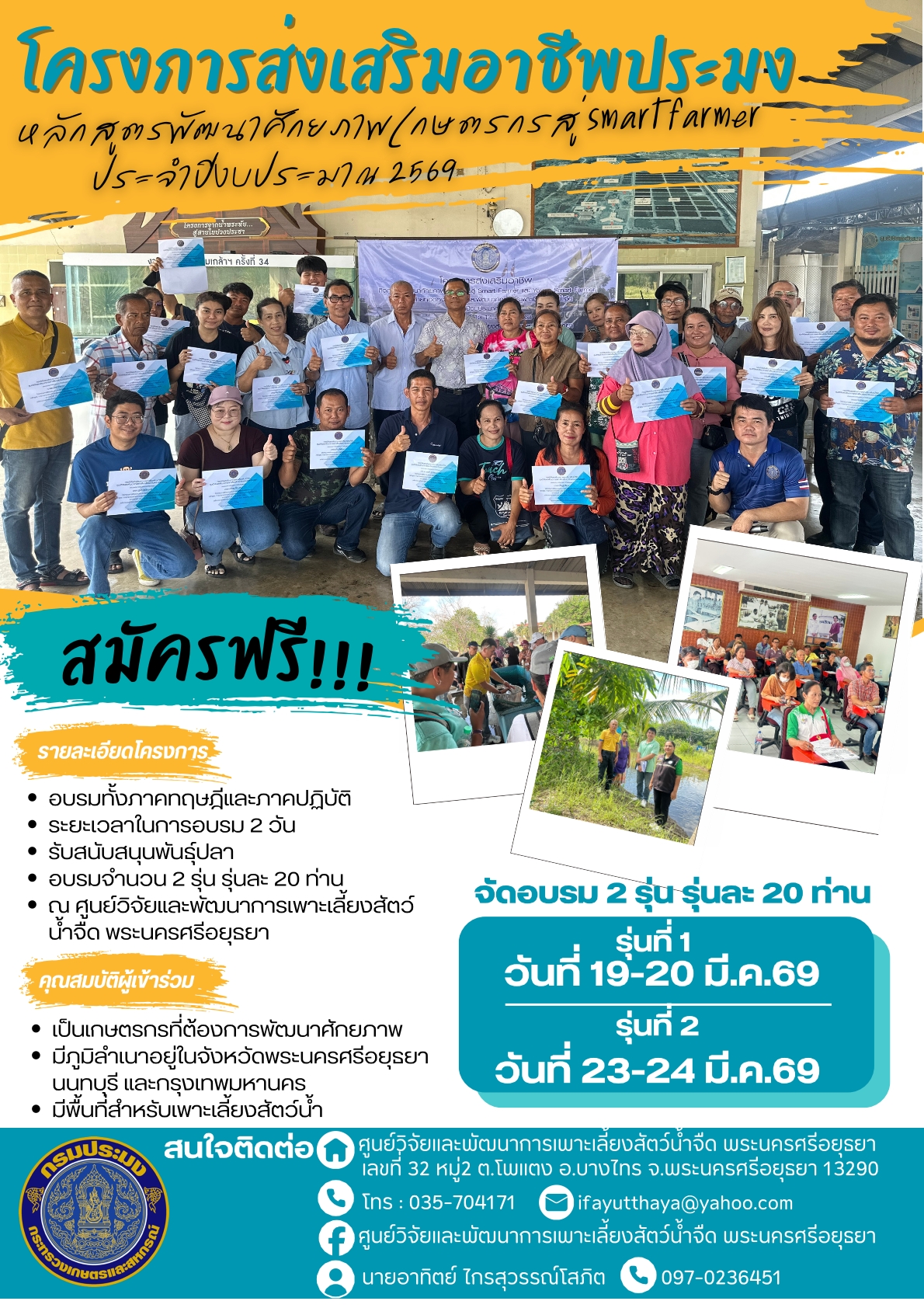รับสมัครเกษตรกรฝึกอบรม หลักสูตร พัฒนาศักยภาพเกษตรกร สู่ smart farmer ประจำปีงบประมาณ 2569