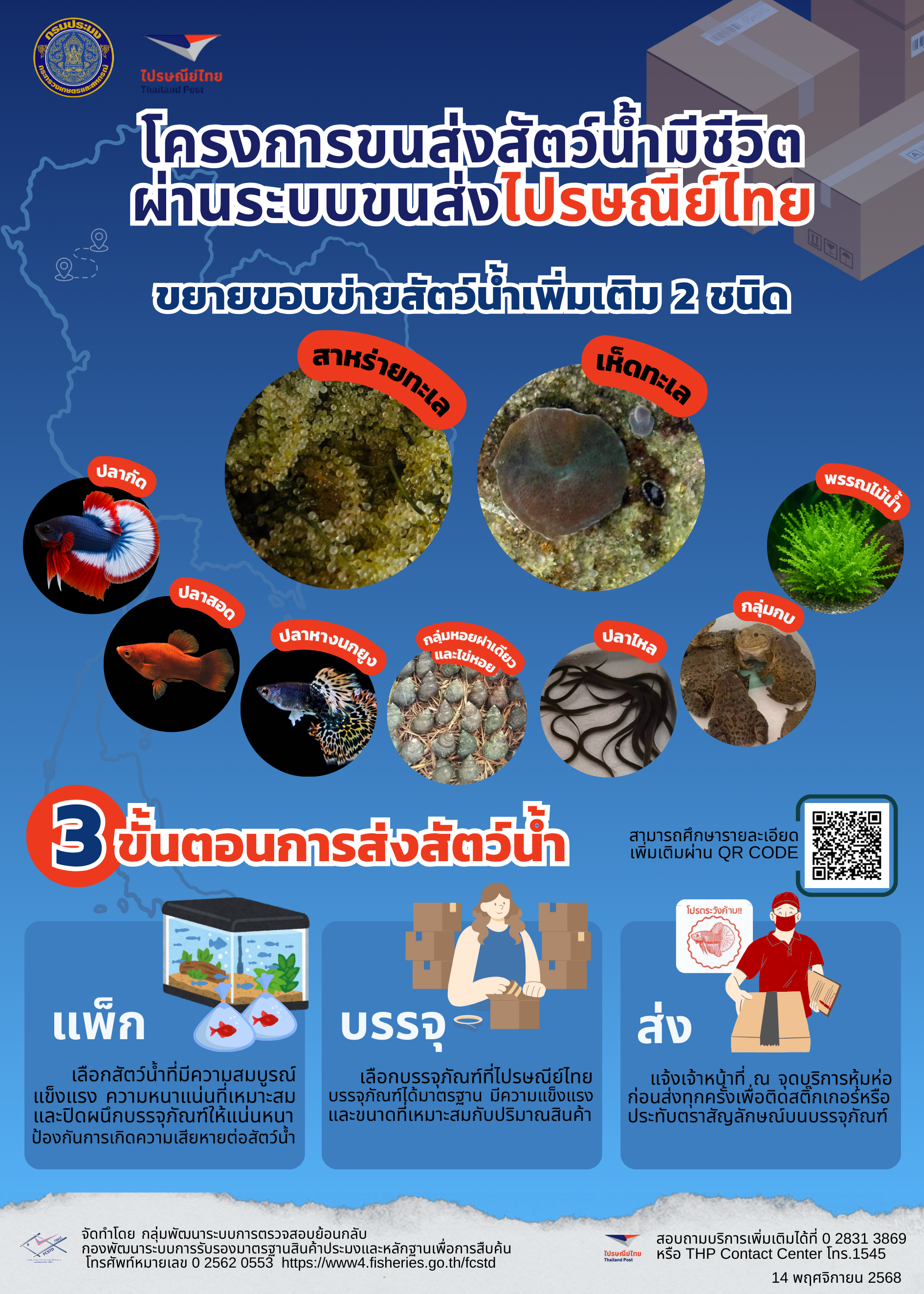 โครงการขนส่งสัตว์น้ำมีชีวิตผ่านระบบขนส่งไปรษณีย์ภายในประเทศ