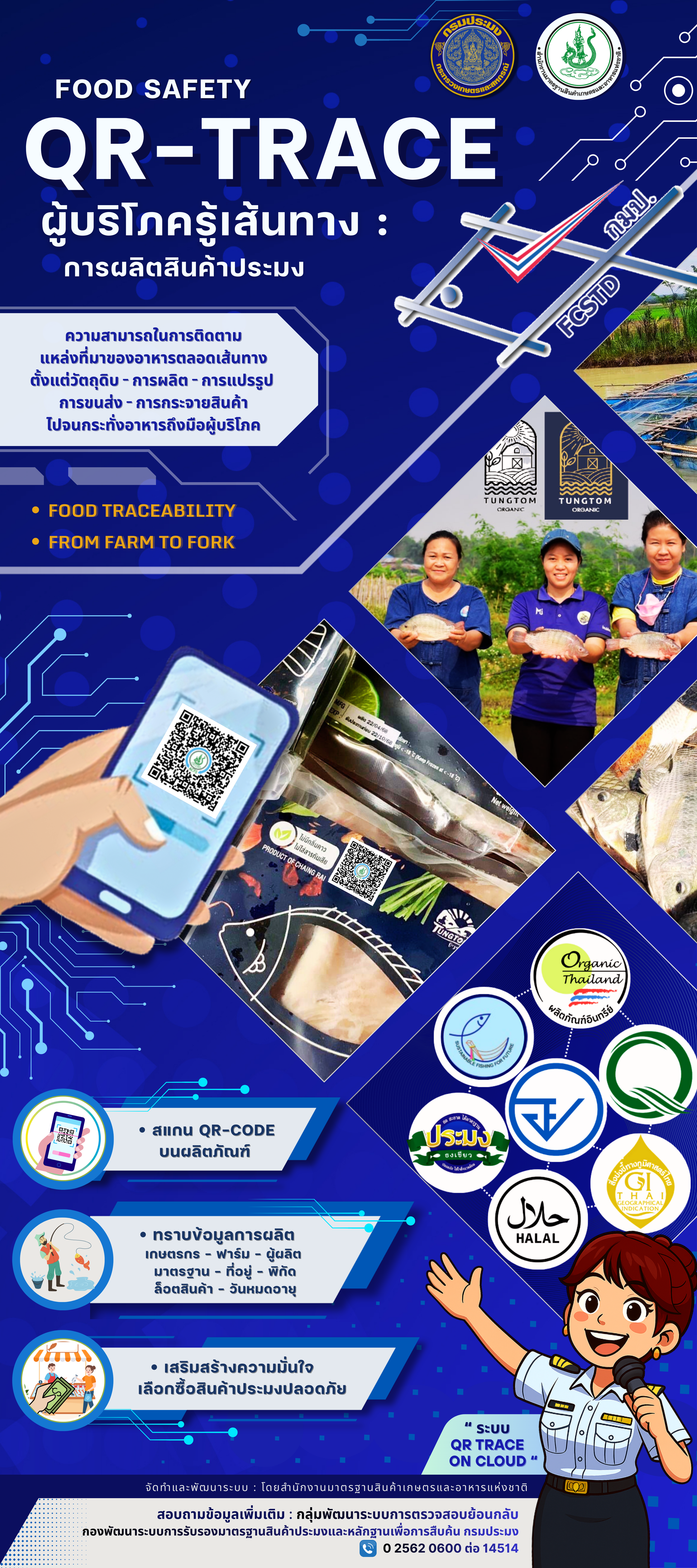 • นำร่องใช้ระบบตามสอบสินค้าเกษตร “ QR Trace On Cloud ” ยกระดับปลานิลอินทรีย์ จังหวัดเชียงราย ให้ตรวจสอบย้อนกลับได้ ผู้บริโภคมั่นใจ! ตลอดสายการผลิต อ่านบทความ