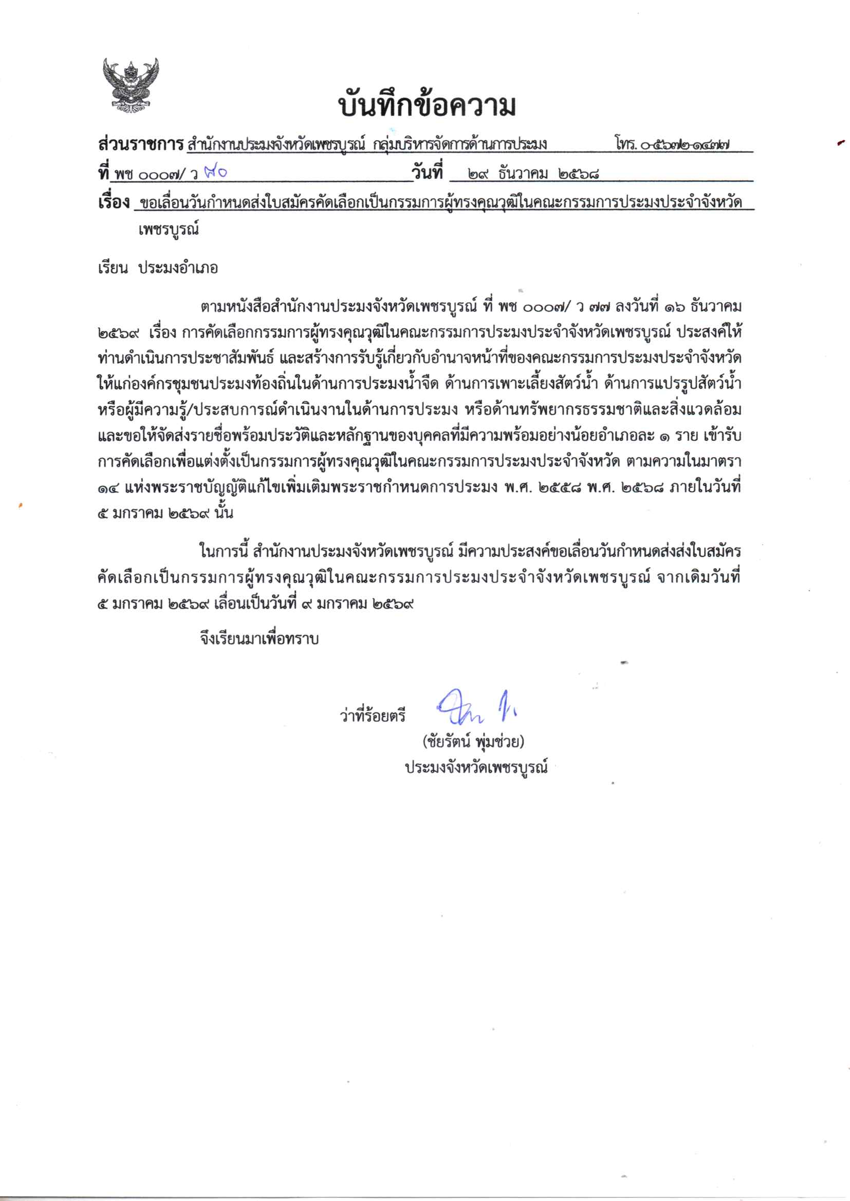 หนังสือแจ้งประมงอำเภอ