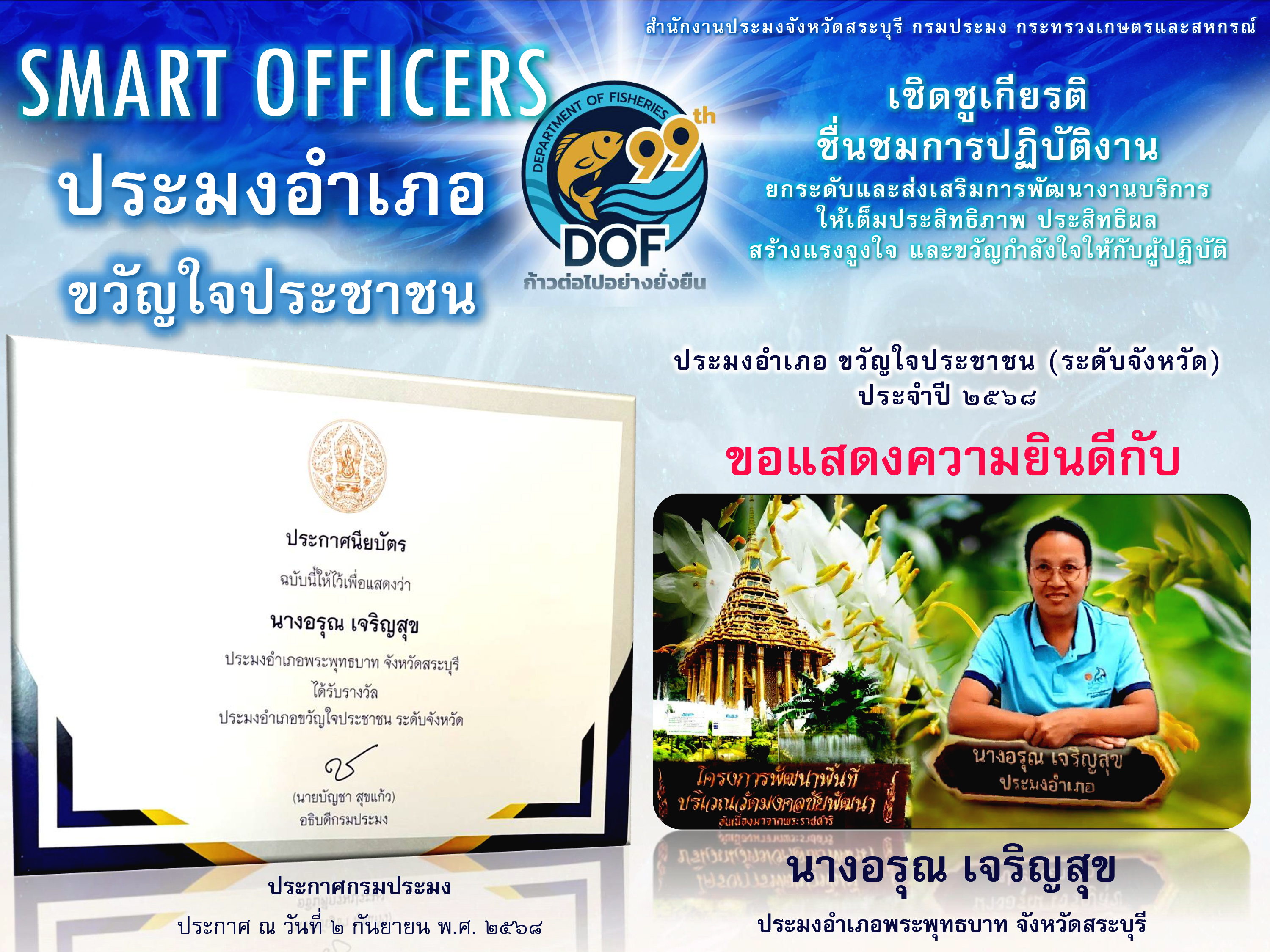 ประมงอำเภอขวัญใจประชาชน 2568                                                                       พนักงานราชการดีเด่น 2565